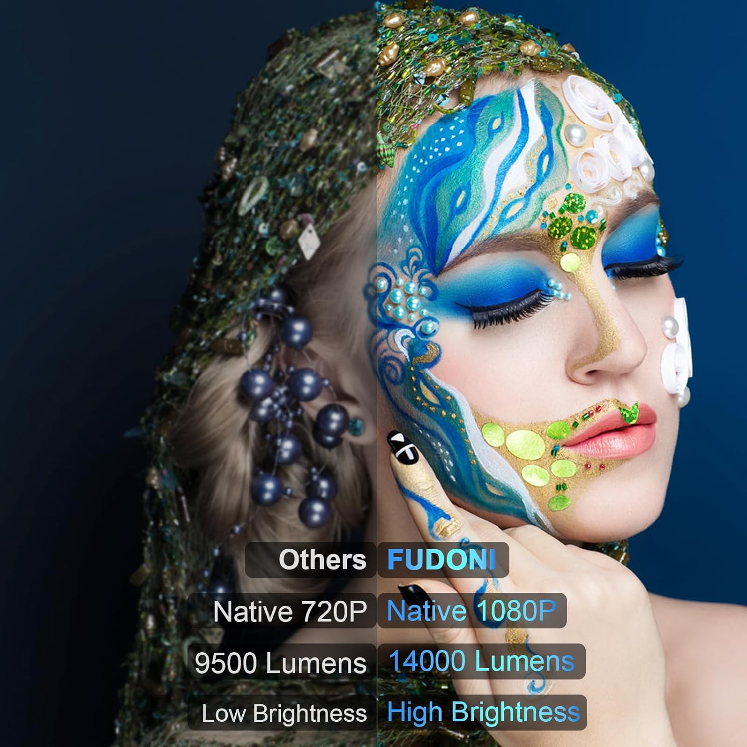 Proyector con WiFi y Bluetooth, FUDONI Upgrade Projector Native 1080P 14000L 4K compatible, proyector portátil de películas para exteriores para cine en casa, compatible con HDMI/USB/TV Stick/computadora portátil/teléfono iOS Android