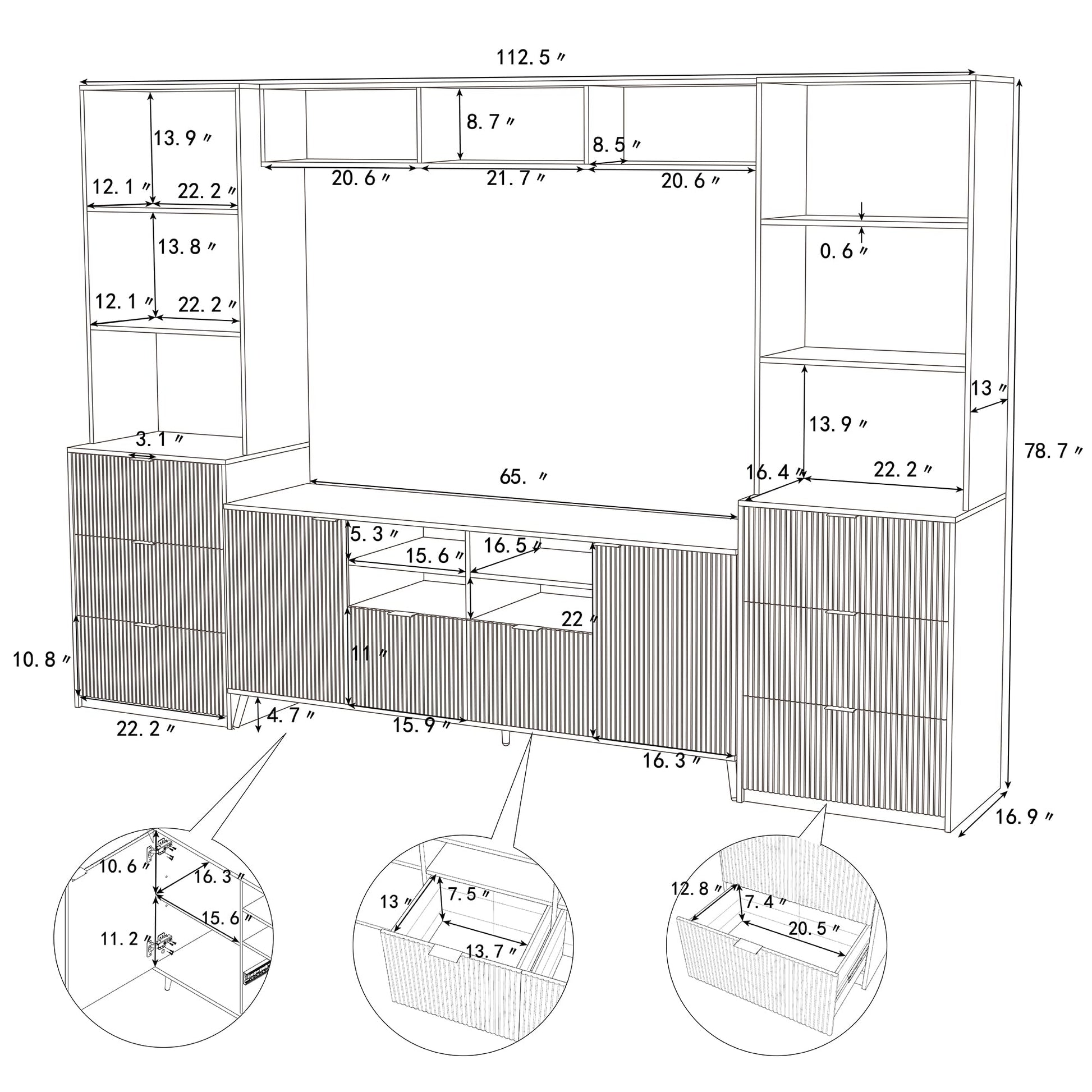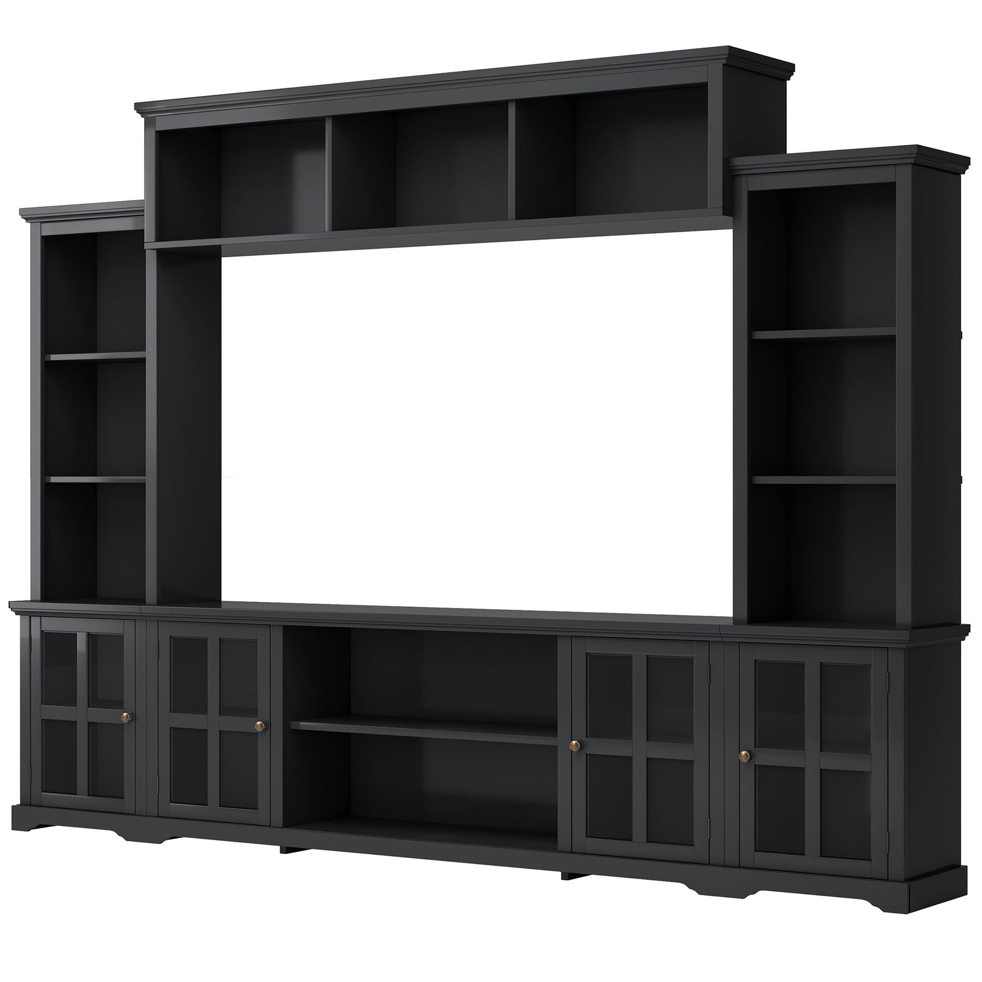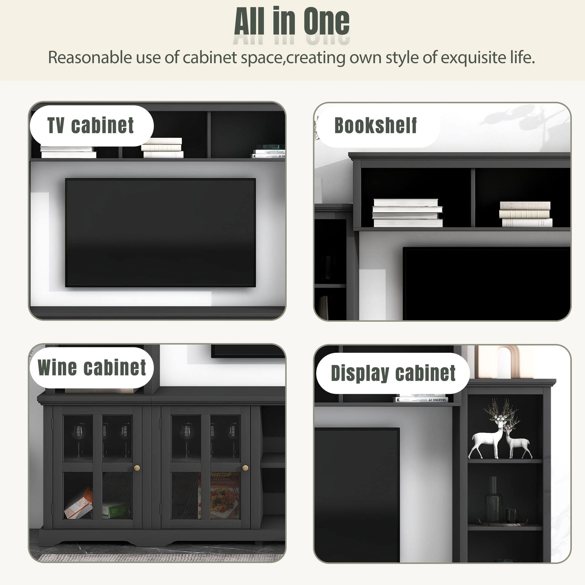 - Multi-Functional Entertainment Set: Designed for more than just media storage, YOPTO Wall Entertainment Center serves as a TV console, bookcase, wine rack, and display case in one. With its efficient layout, the YOPTO Media Center with Bookshelves optimizes space while keeping your living area stylish and well-organized. Whether you need storage for electronics or decorative items, this unit meets all your needs.