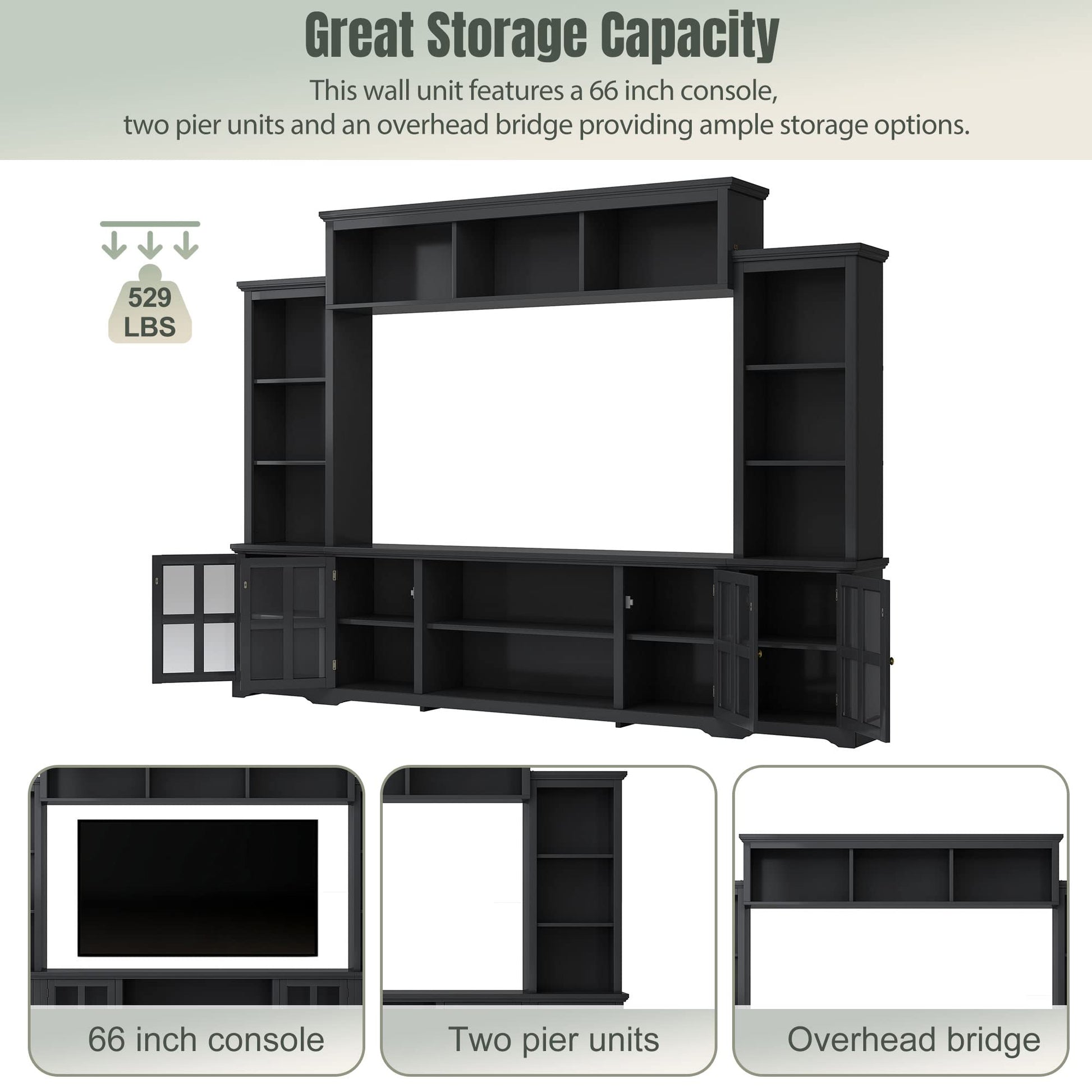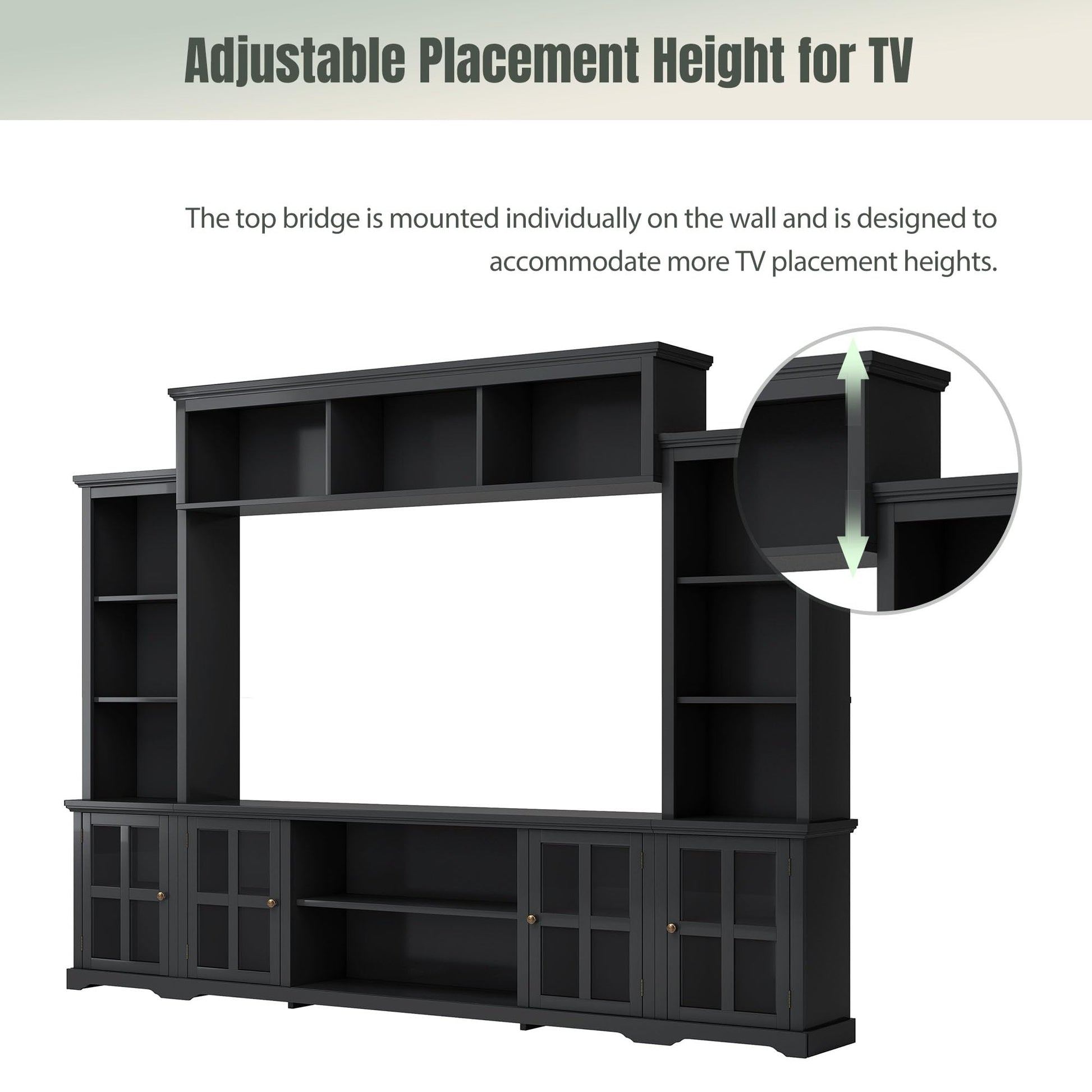 - Modern & Customizable Design: YOPTO Wall Unit Entertainment Center features a sleek, modern aesthetic with clean lines that elevate your living space. The adjustable overhead bridge can be aligned with the side cabinets or mounted separately, offering a customizable layout for your Entertainment Center for 75 Inch TV. This versatile design allows you to create the perfect setup for your home.