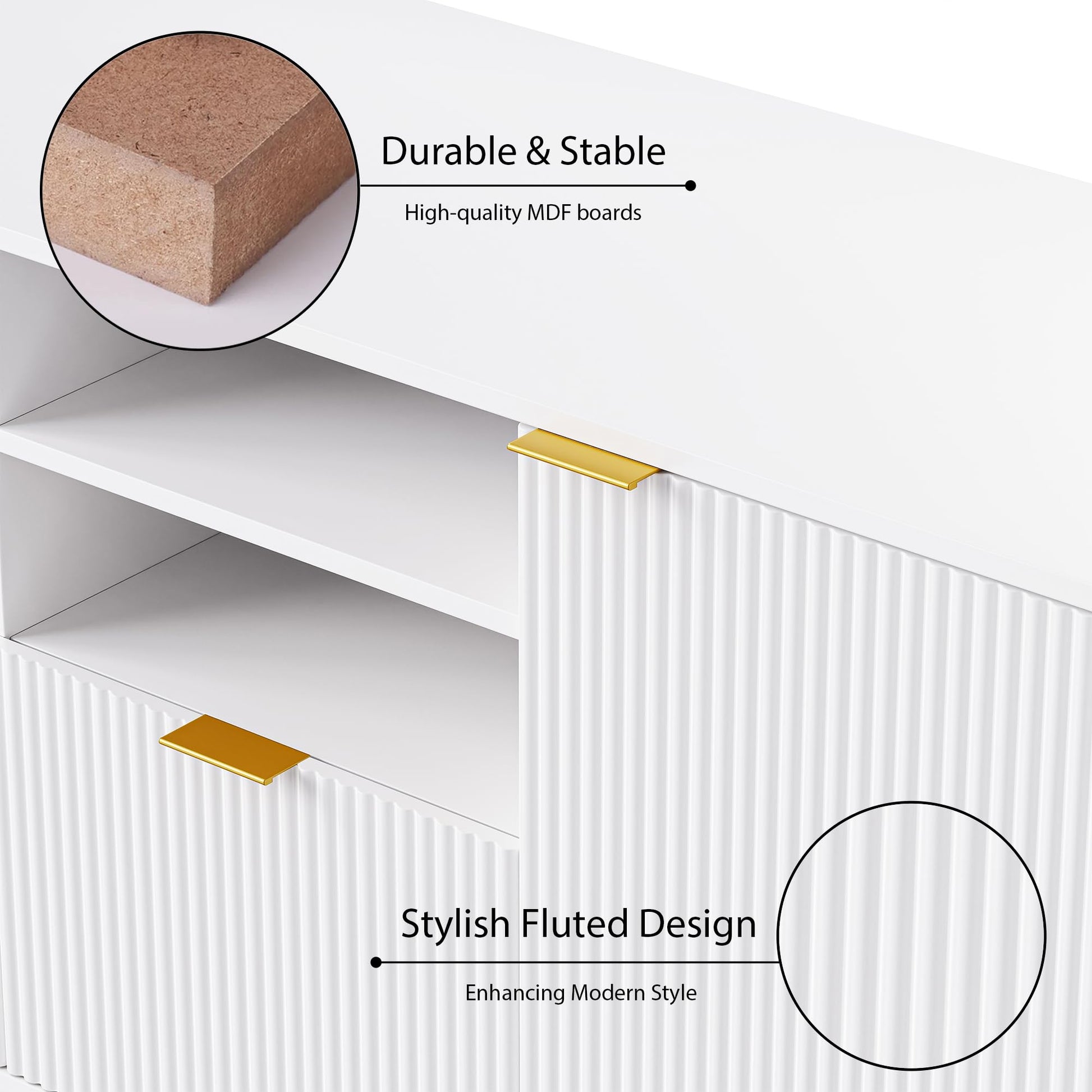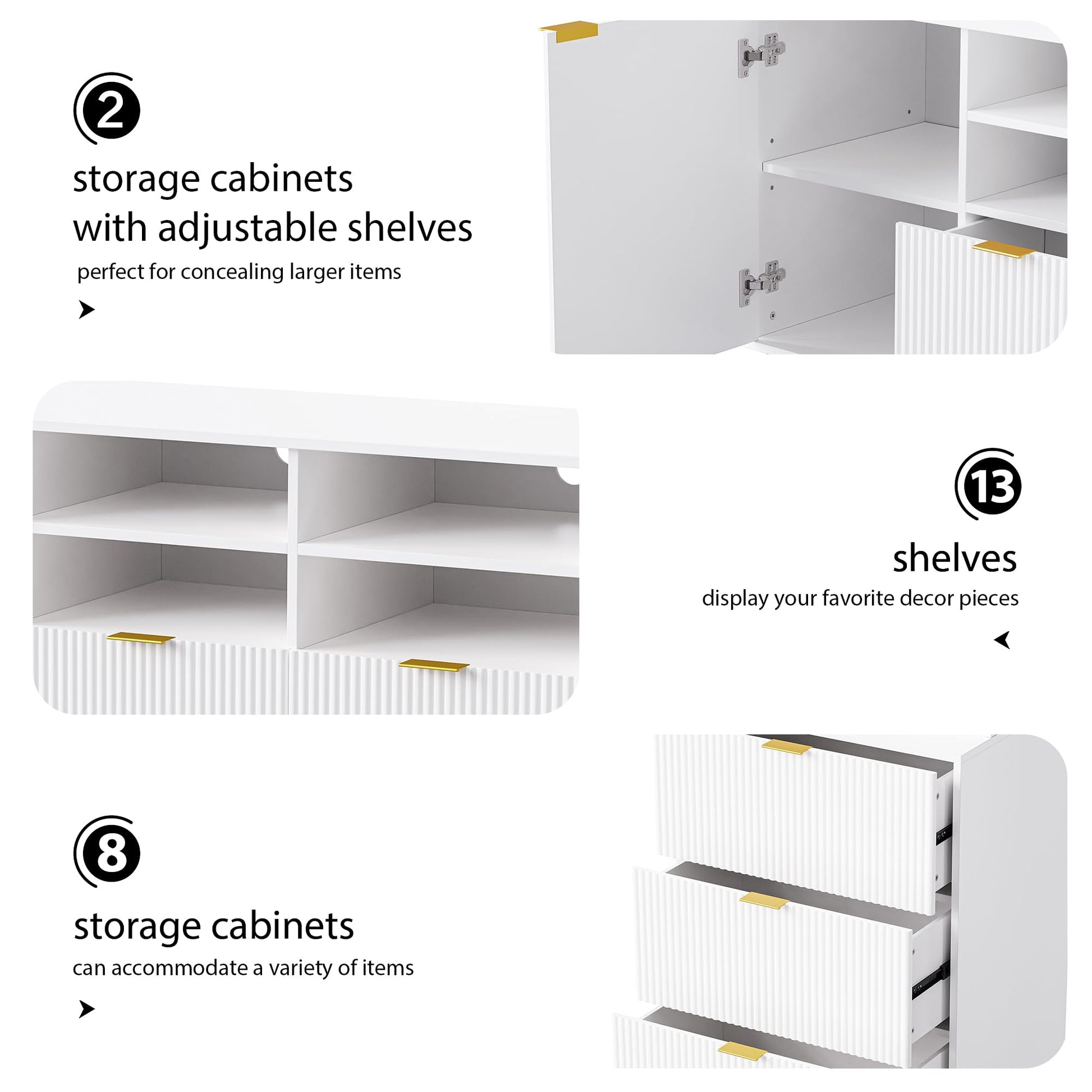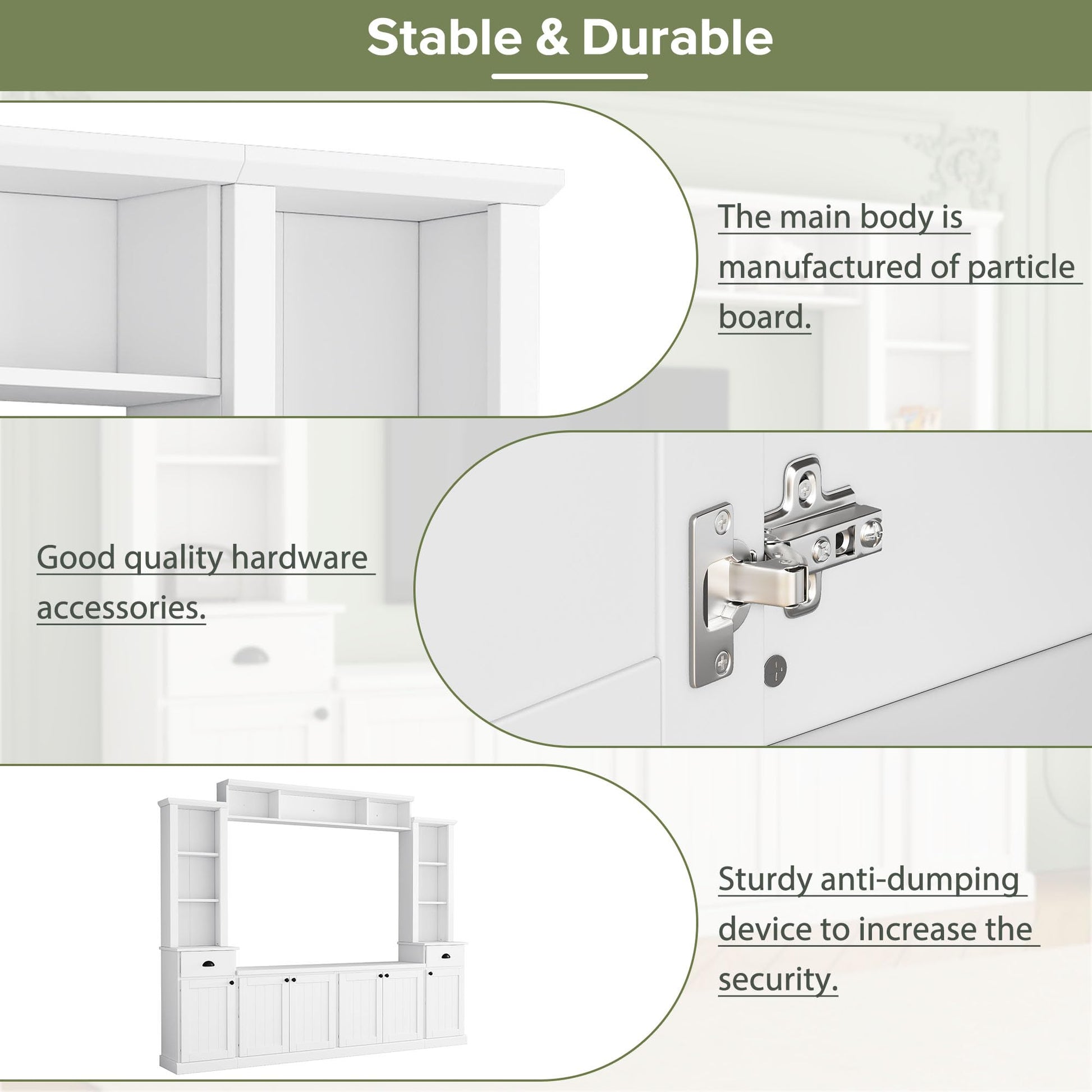 103" Minimalist Entertainment Center Wall Unit Set with Bridge for TVs Up to 75'',Ample Storage Space TV Stand W/Adjustable Shelves,Modernist Large Media Console for Living Room,White