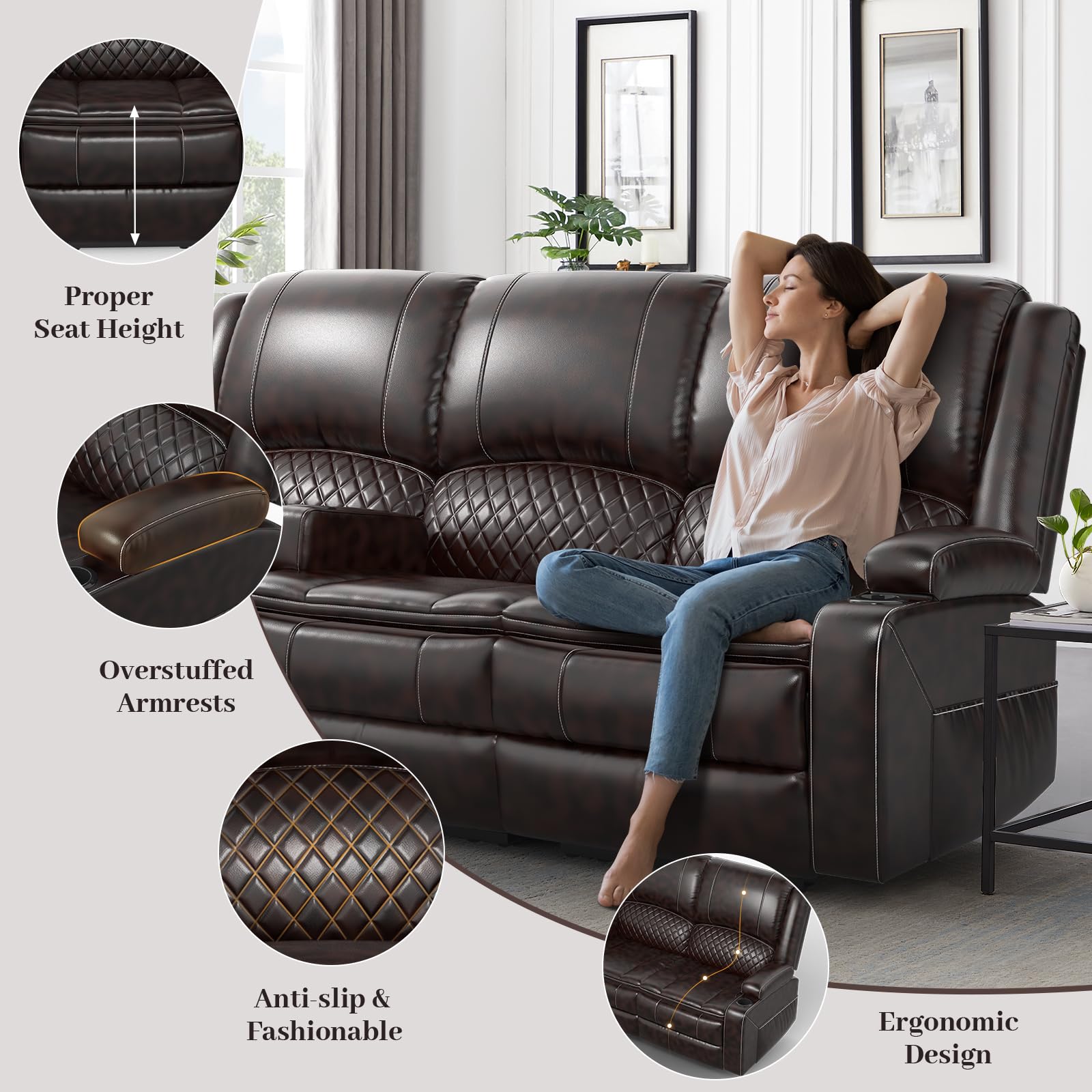- Double-layer Seat Cushion: We specially added an extra layer of seat cushion to our 3 seater recliner sofa set, increasing the thickness of the entire seat cushion, and filling it with high-rebound memory foam, which greatly improved the entire sitting feeling.
