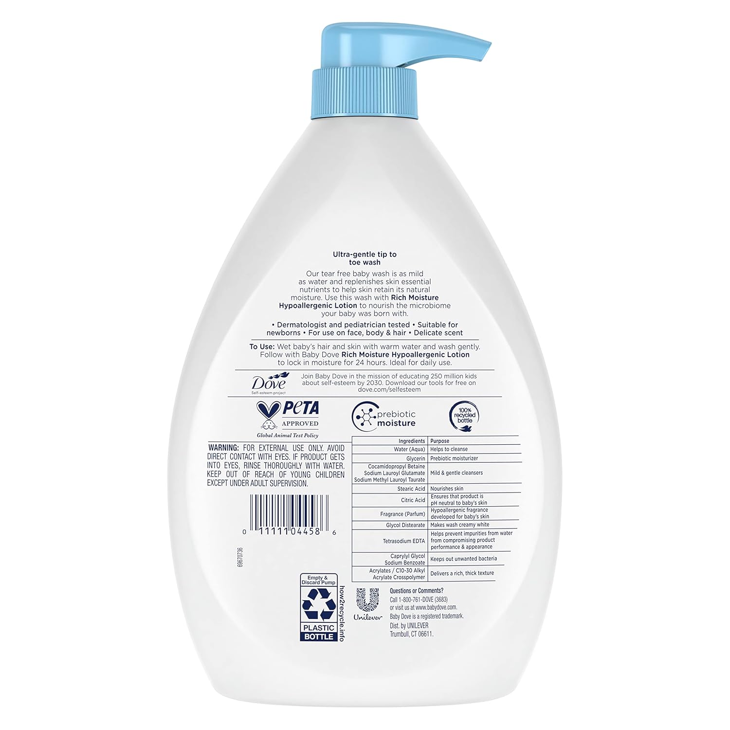 - FROM TIP TO TOE: Baby Dove Rich Moisture Hypoallergenic Baby Wash (20 oz.) gently nourishes and replenishes your baby's delicate skin, leaving it soft and moisturized