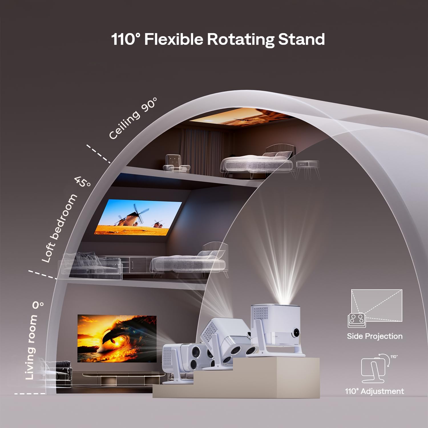 - Always in Focus, Ready in 3 Seconds: Powered by advanced ToF technology, BOOM mini movie projector delivers real-time auto focus and keystone correction in just 3 seconds—far faster than others in its class. Even if moved or bumped, it instantly readjusts, keeping visuals sharp and your experience uninterrupted. Ensure an immersive viewing experience.