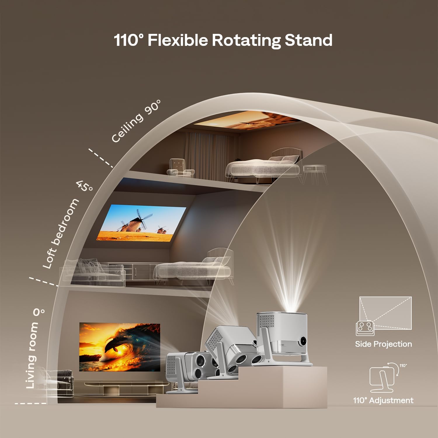 - Designed for Comfort: BOOM mini tv projector’s compact, eye-friendly design fits effortlessly into any space. With soft diffusion technology, it reduces eye strain for longer, more comfortable viewing—whether indoors or outdoors.