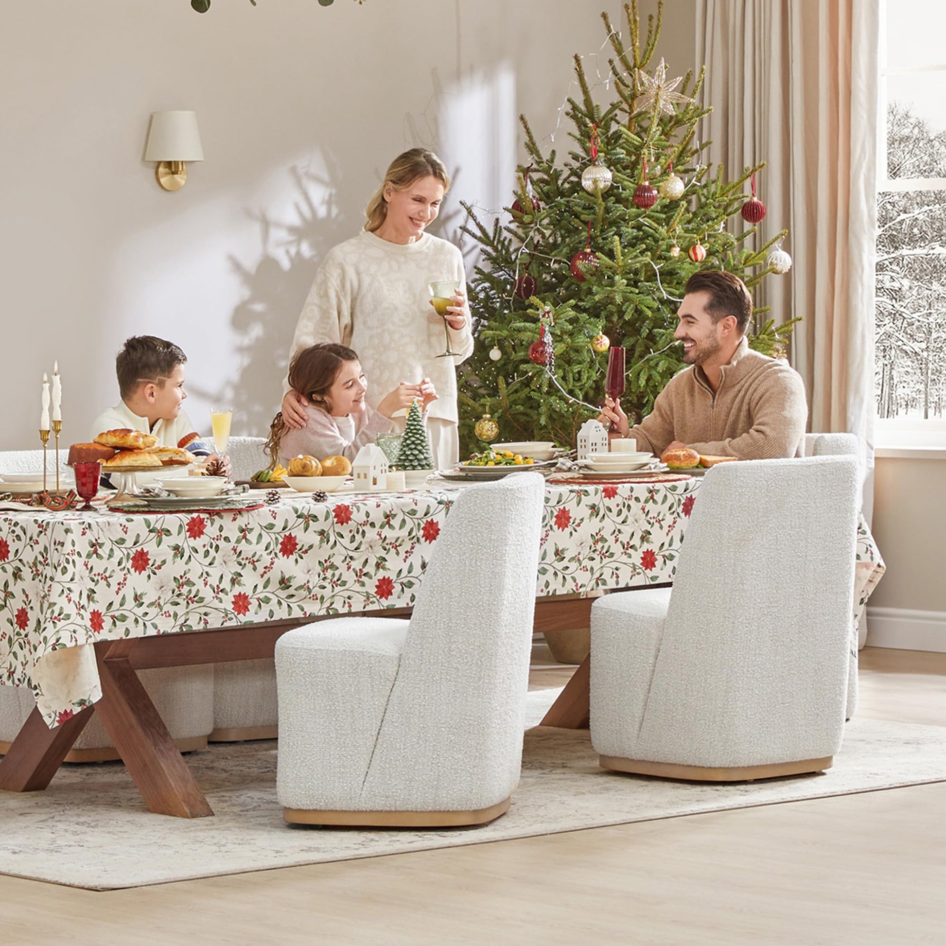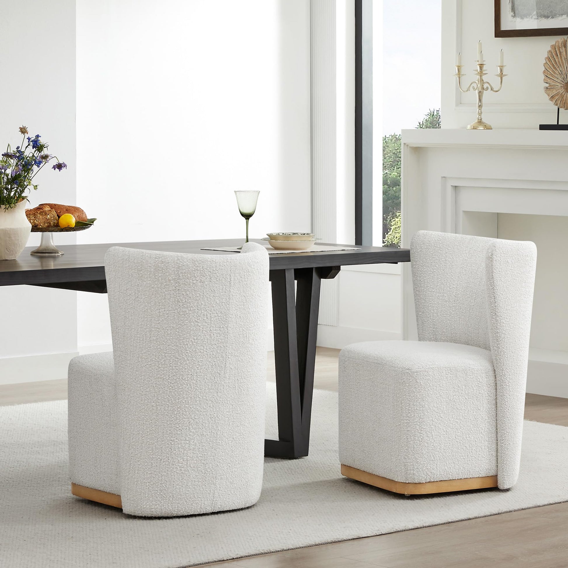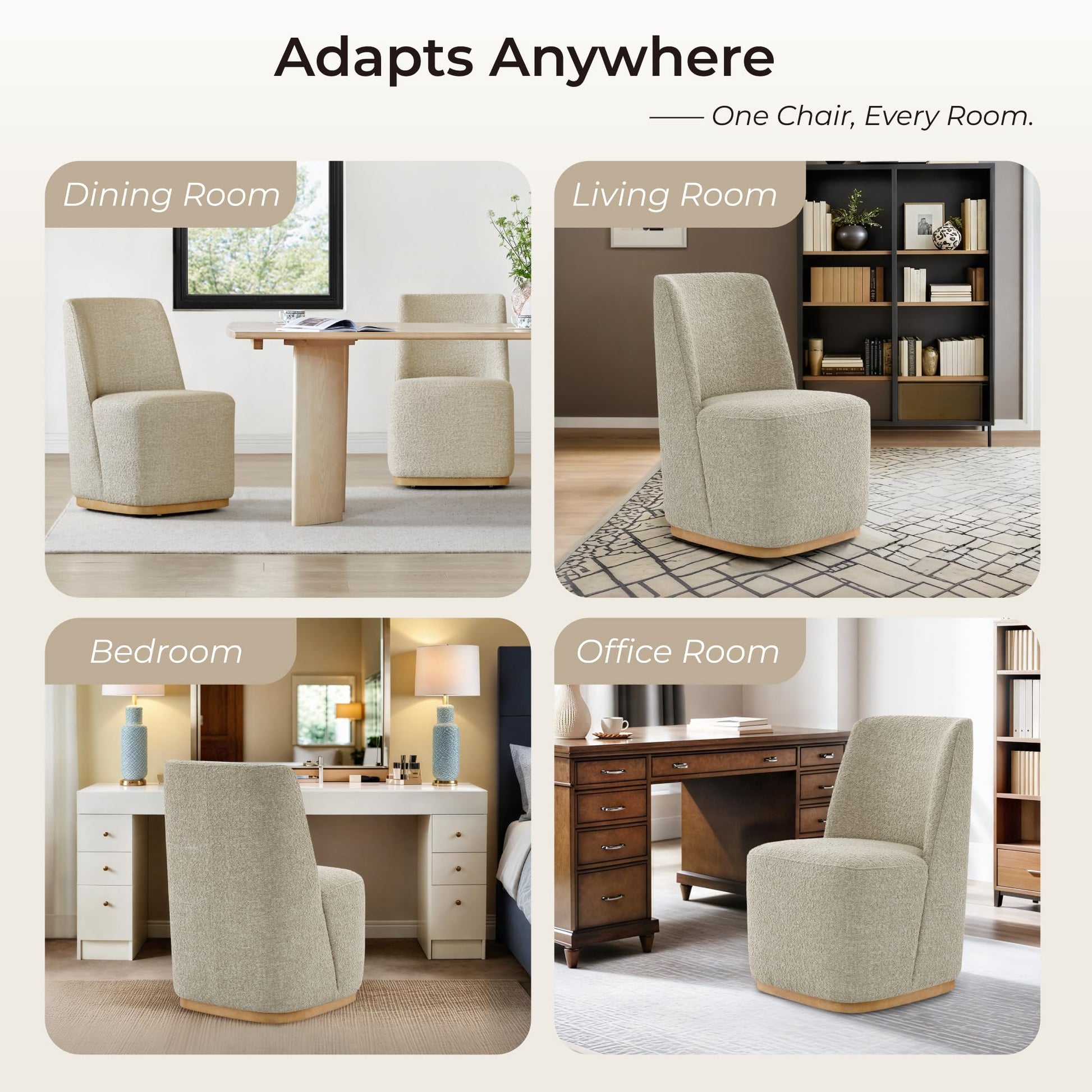 CHITA Upholstered Rolling Dining Chair on Casters Set of 4, FSC Certified Modern Fabric Dining Chair with Casters, Boucle Dining Chairs for Reading Room Waiting Room Kitchen Dining Room, Oatmeal