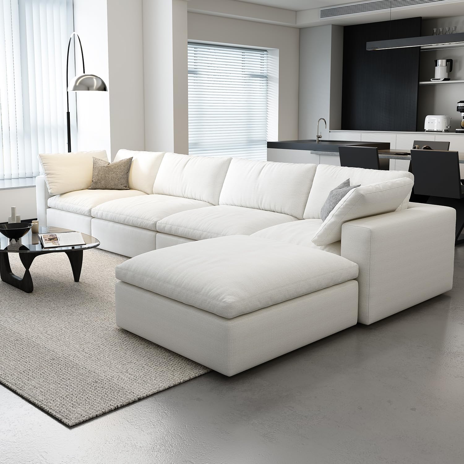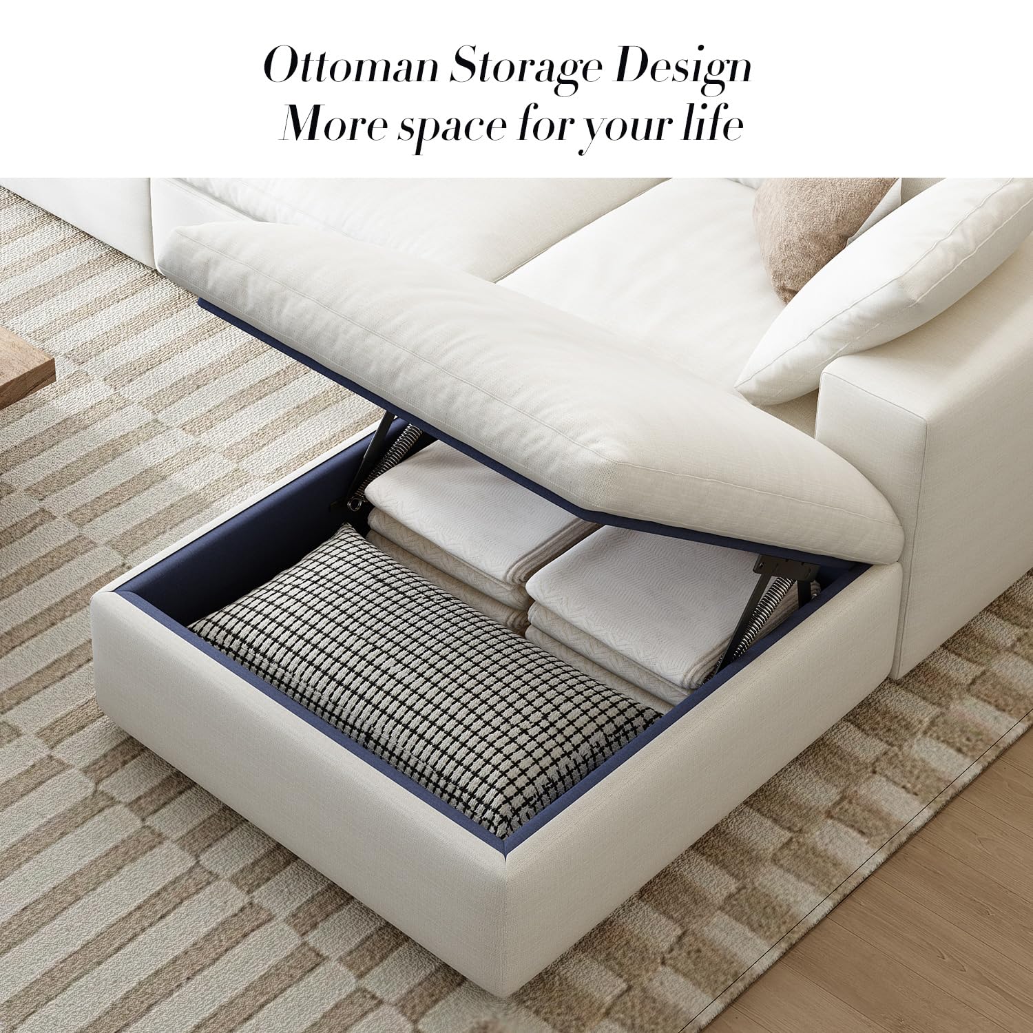 Cloud Modular Sectional Sofa with Storage Ottoman,120" L Shaped Sectional Couches for Living Room,Down Filled Comfort Minimalist Deep Sofa Couches for Office Apartment (White, 3 Seater+1 Ottoman)