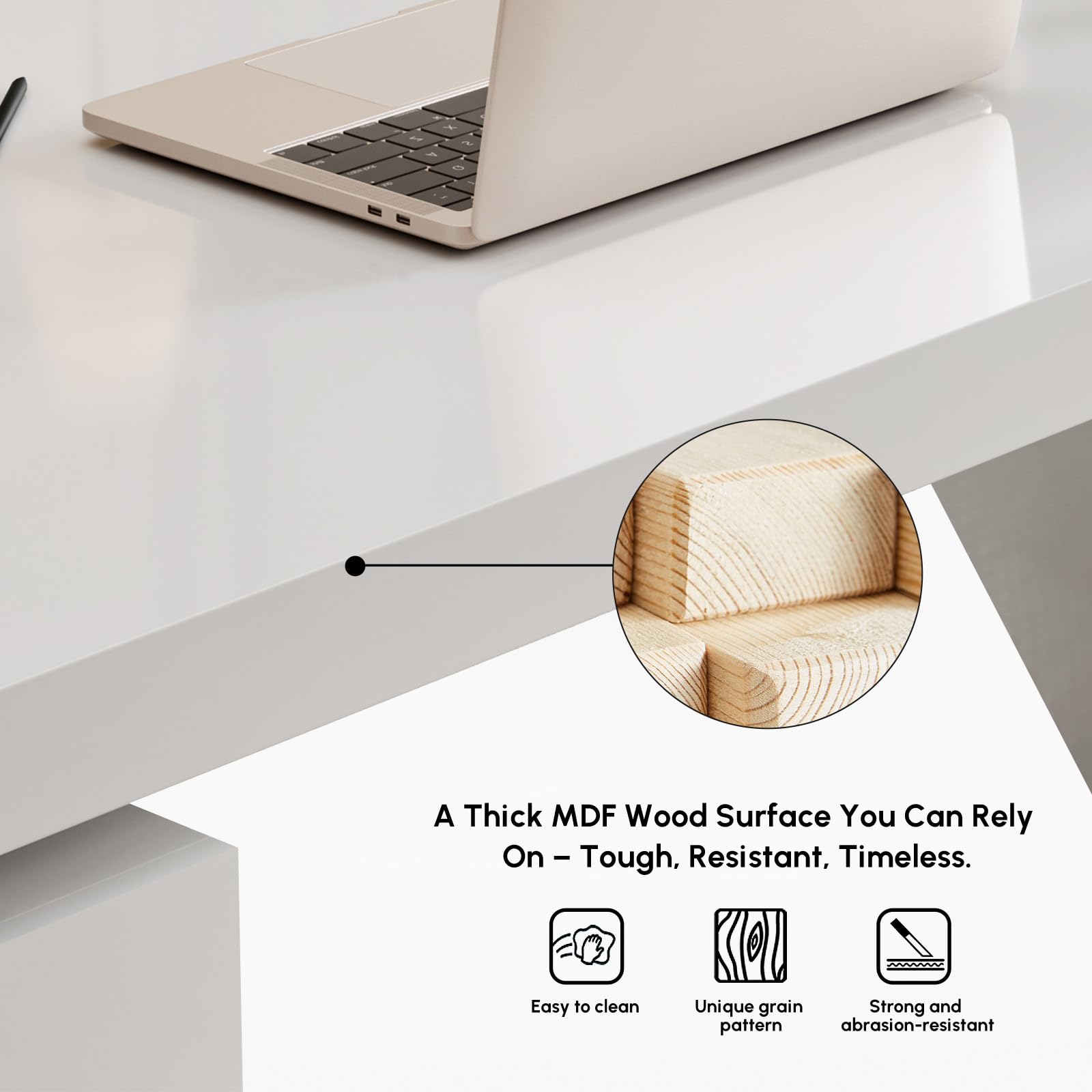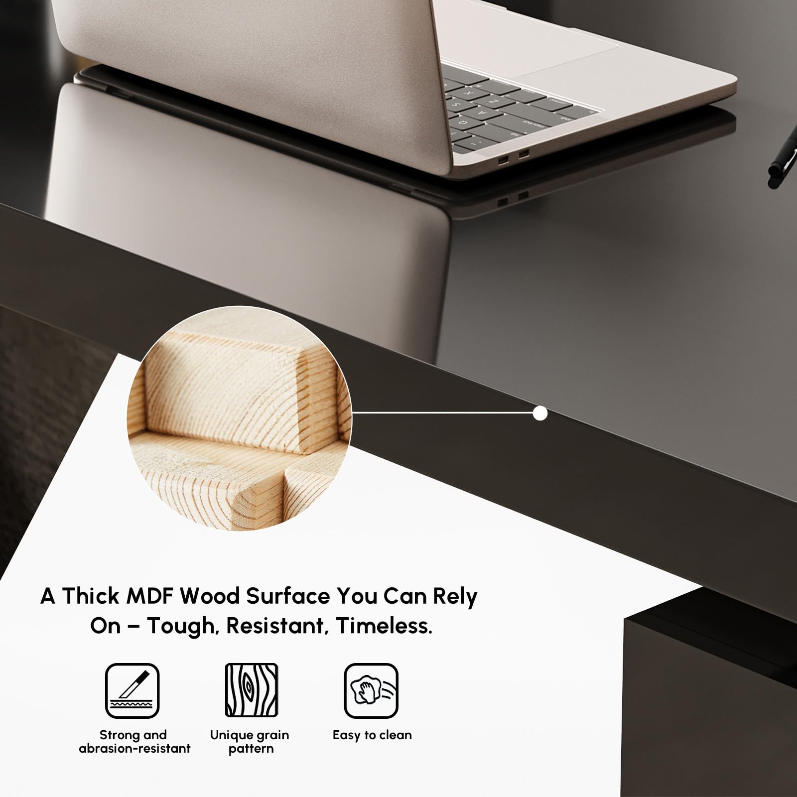 - Sturdy Construction for Long-Term Use: Combining high-density MDF and metal, this desk is designed for long-term durability. It can easily handle the daily demands of work, offering reliable support and stability for years without the need for frequent maintenance or repair