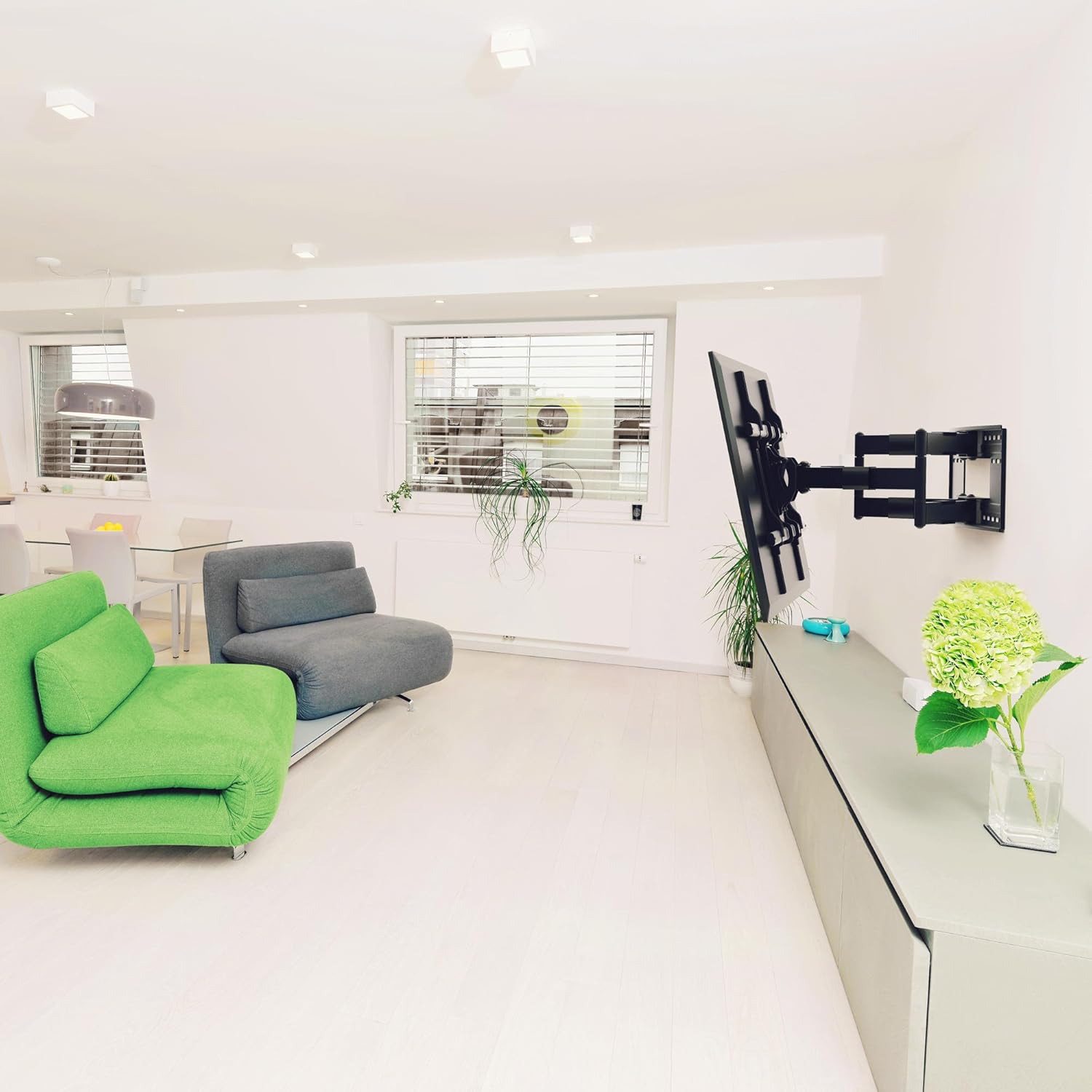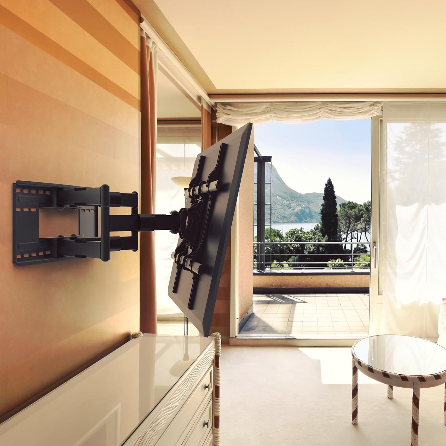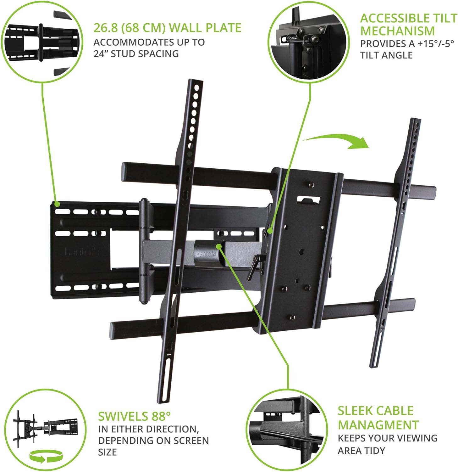 - FULL MOTION ARTICULATING TV MOUNT: Constructed of high-quality steel, giving you +5/-15° tilt, 45° to 88° left or right depending on screen size. Adjust your TV to the angle you want to watch it.