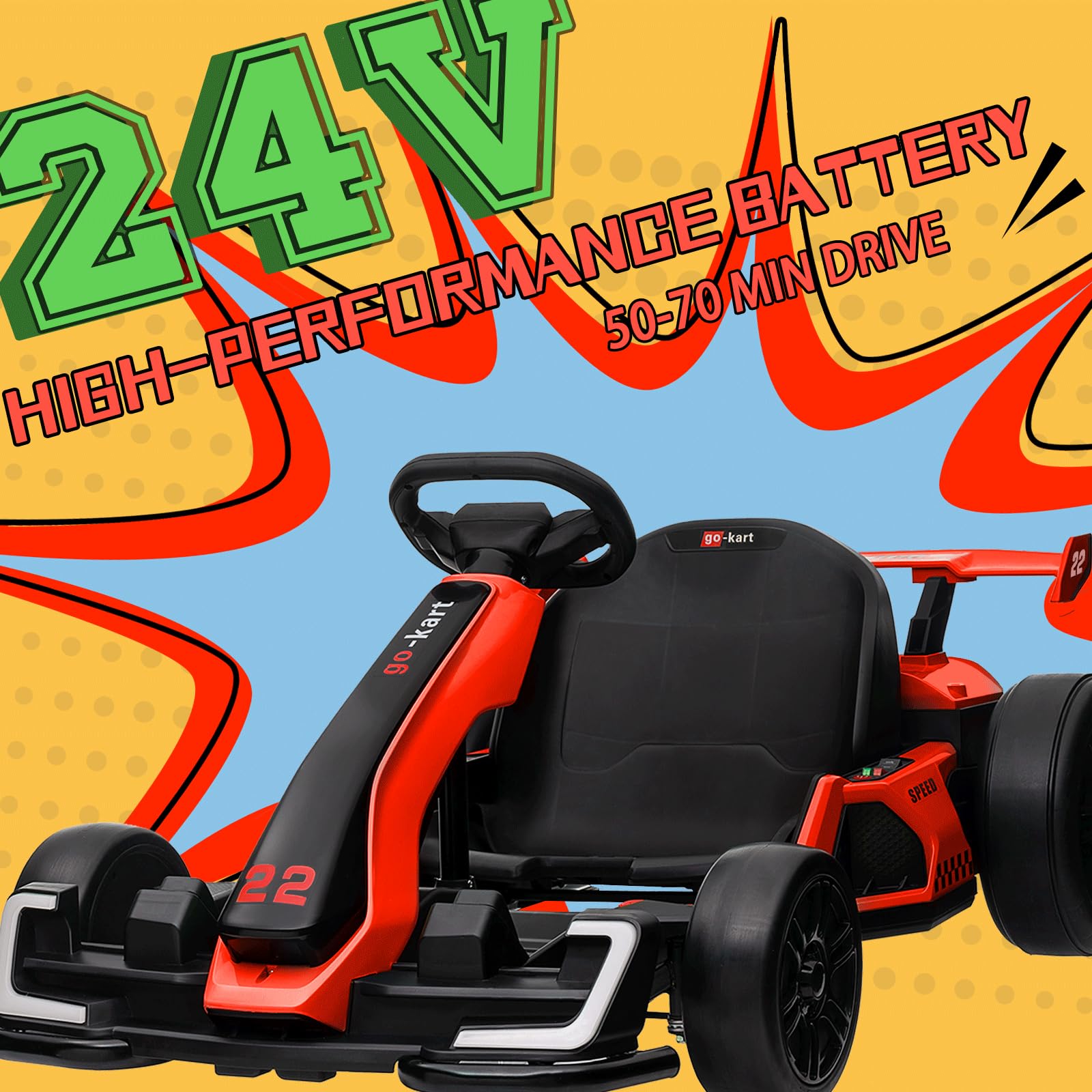 - 【Realistic Exciting Experience】Powered by a robust 24V 300W motor, this electric kart delivers smooth acceleration and supports high-performance drifting. Reach speeds up to 8.5 MPH while enjoying vibrant LED headlights and realistic brake lights for an immersive racing experience that sparks excitement and imagination