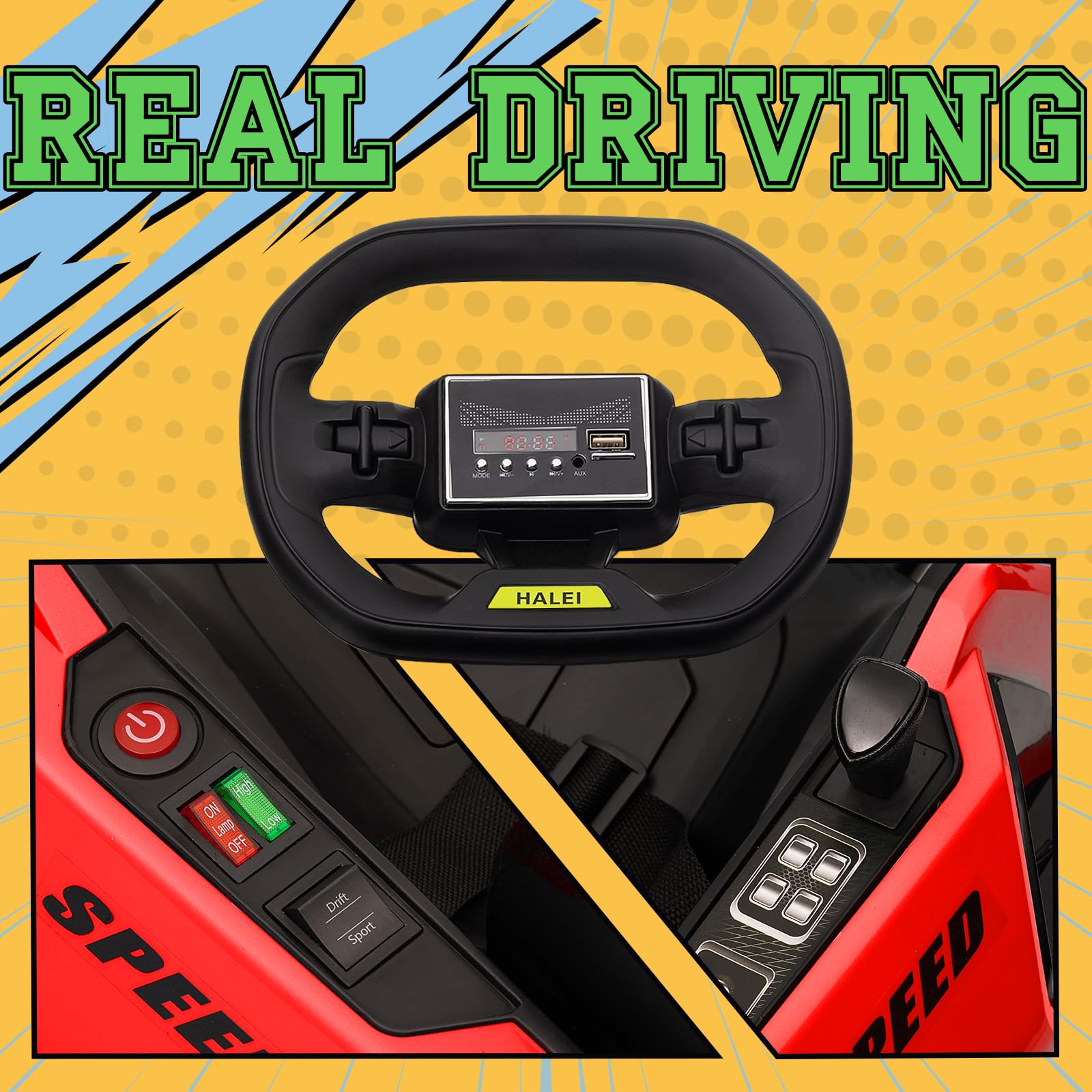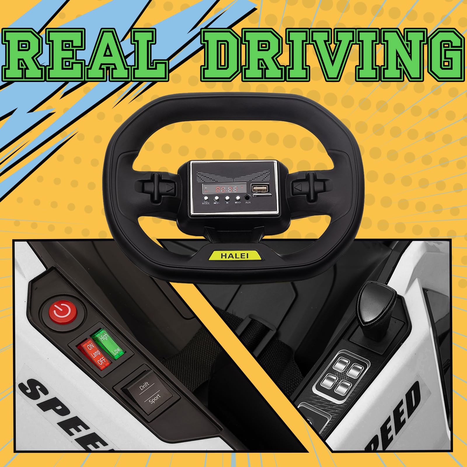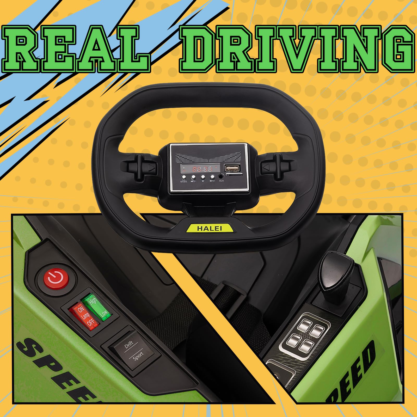 - 【Immersive Driving with Music】Enhance the racing atmosphere with built-in audio support! Connect via USB, FM radio, or Bluetooth to play your child’s favorite tunes while they drive. The dynamic background music adds to the realism, making them feel like true professional racers on the track
