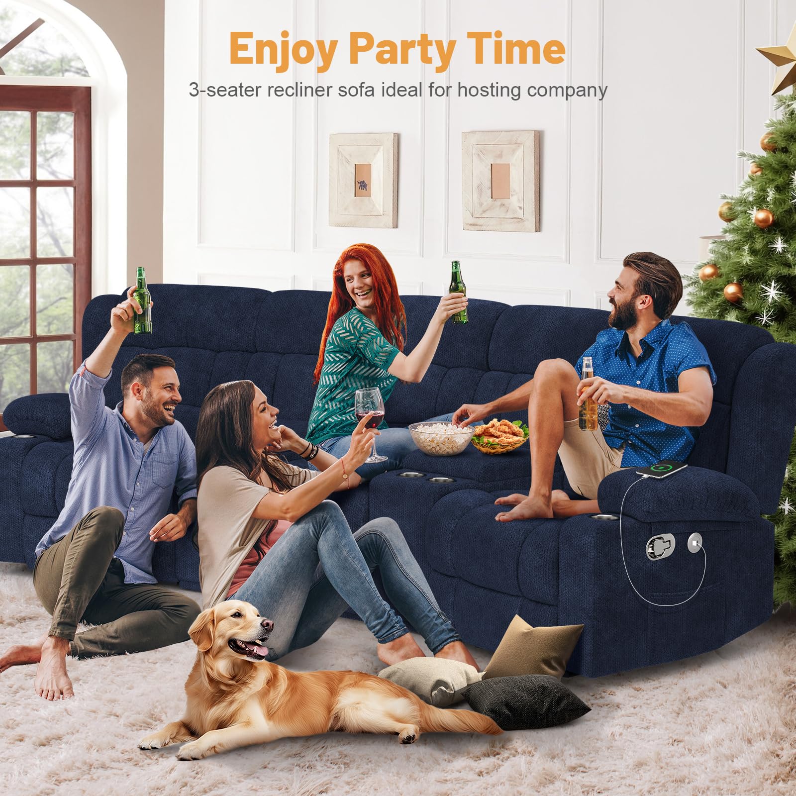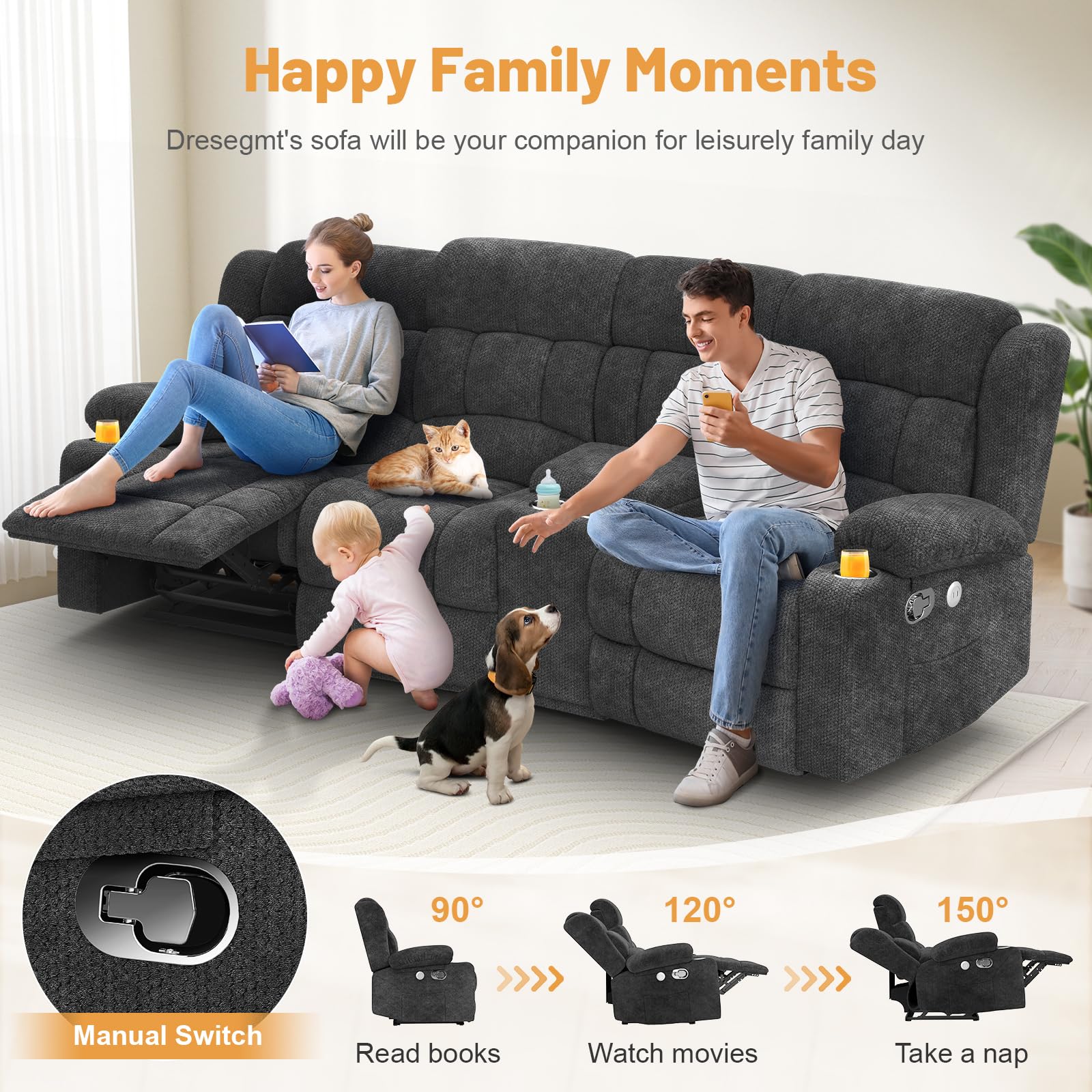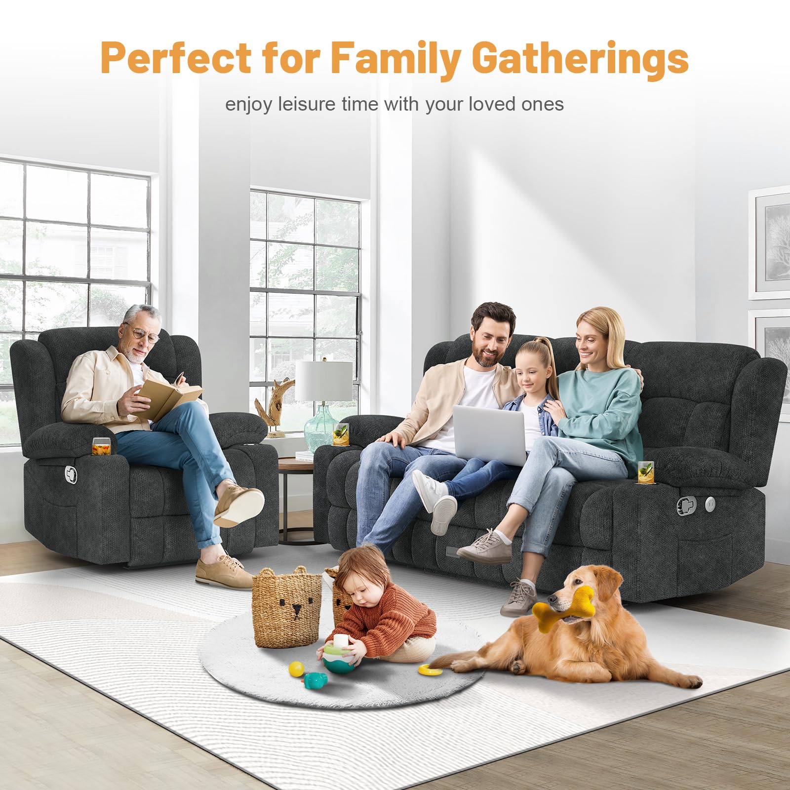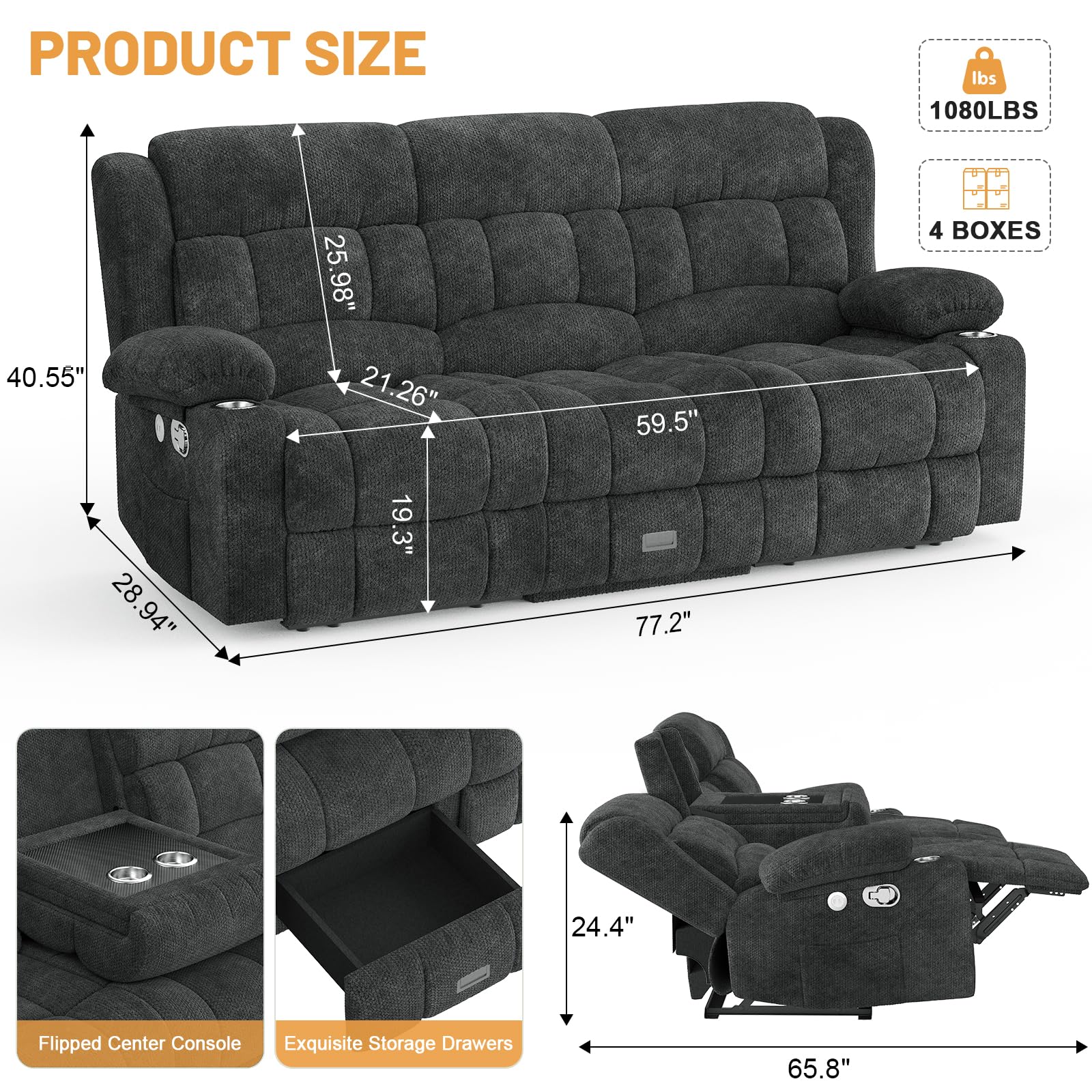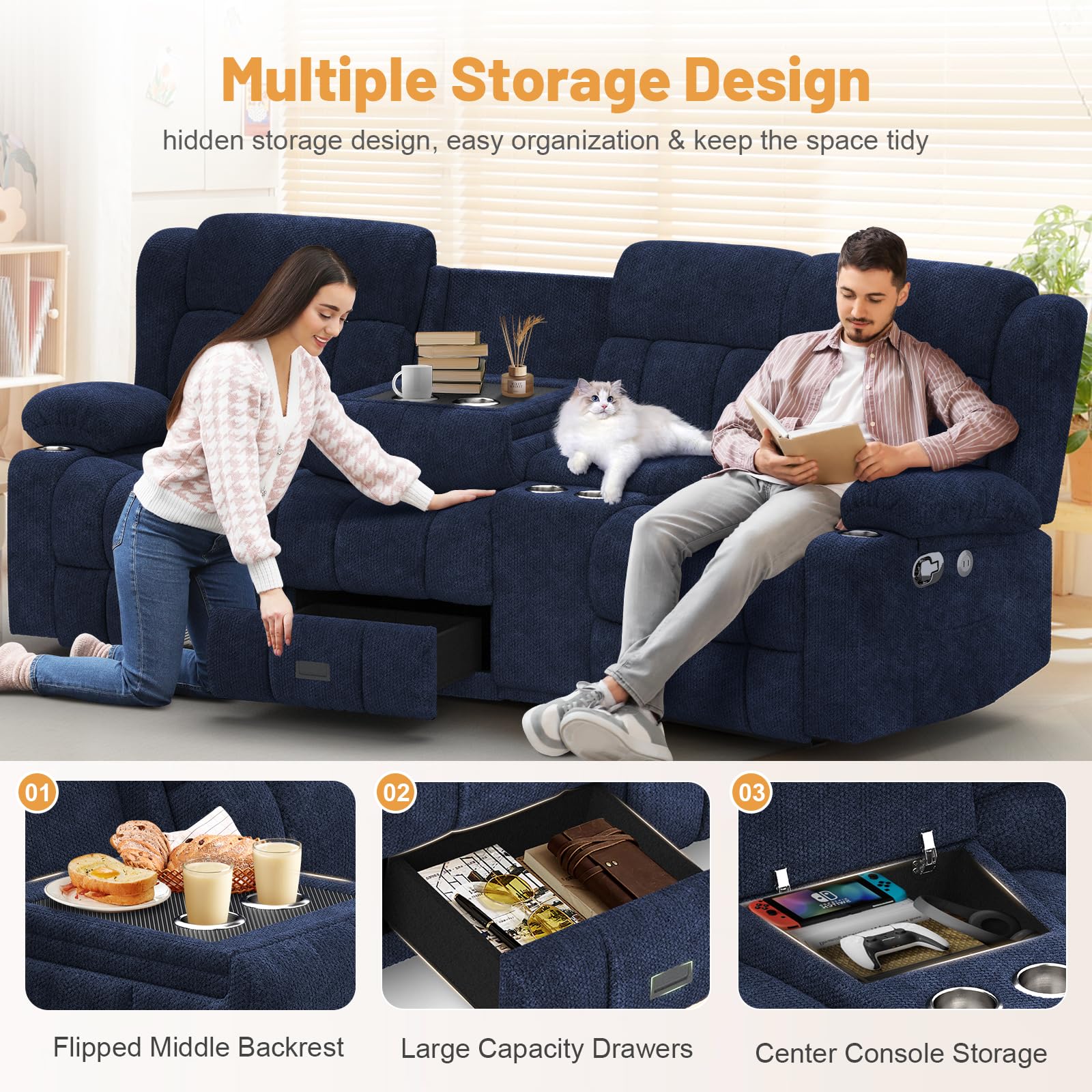 - 【Intimate Design Brings You More】Perfect for movie nights with the family, the middle backrest can be folded down to become a table for drinks and food. In addition, the home theater recliner sofa is equipped with USB charging port, side pockets, and a large drawer for storing daily necessities, greatly enhancing recliner space utilization. As our designers say, "Optimizing space is not just about saving room, it’s about enhancing your living comfort and quality of life, making every moment enjoyable."