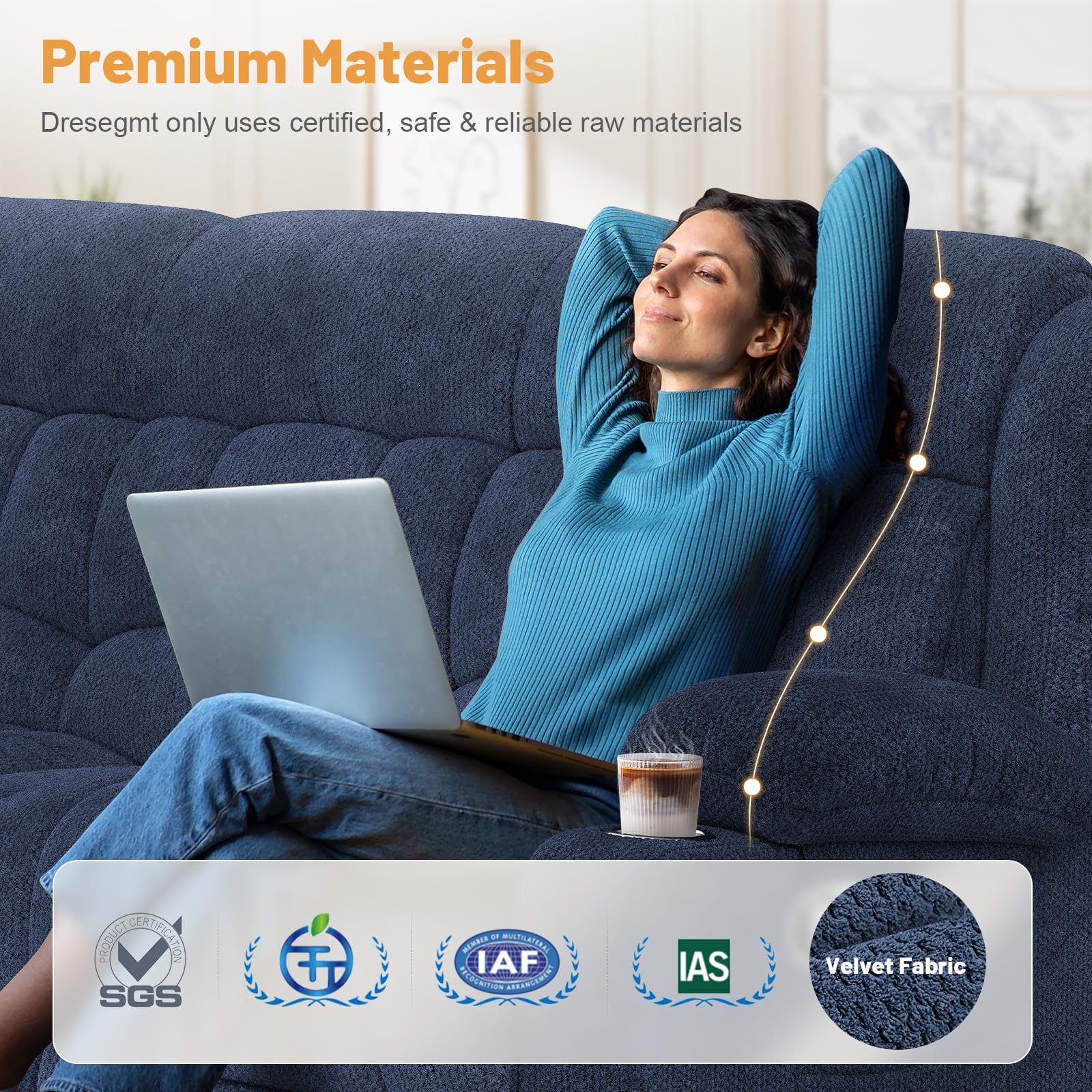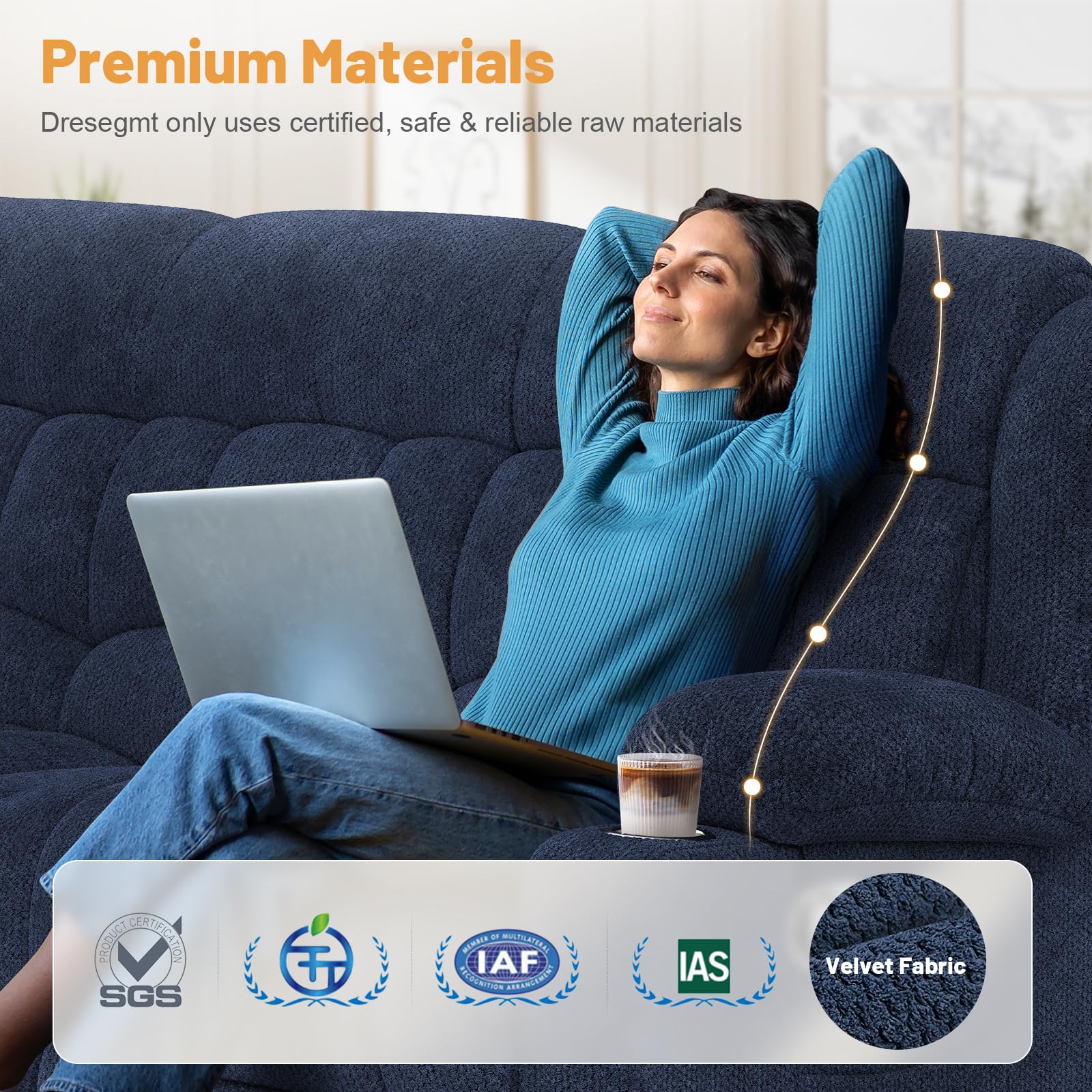 - 【Selected Materials & Quality Assurance】Exquisite workmanship and high quality are our foundation, the love seat recliners are skin-friendly, soft velvet fabric with high elasticity memory foam, giving you cloud-like comfort and warmth. Each sturdy frame has been rigorously tested 25,000 times and can support up to 360LB per seat. All recliner sofas produced by Dresegrmt are stable, solid and long-lasting.