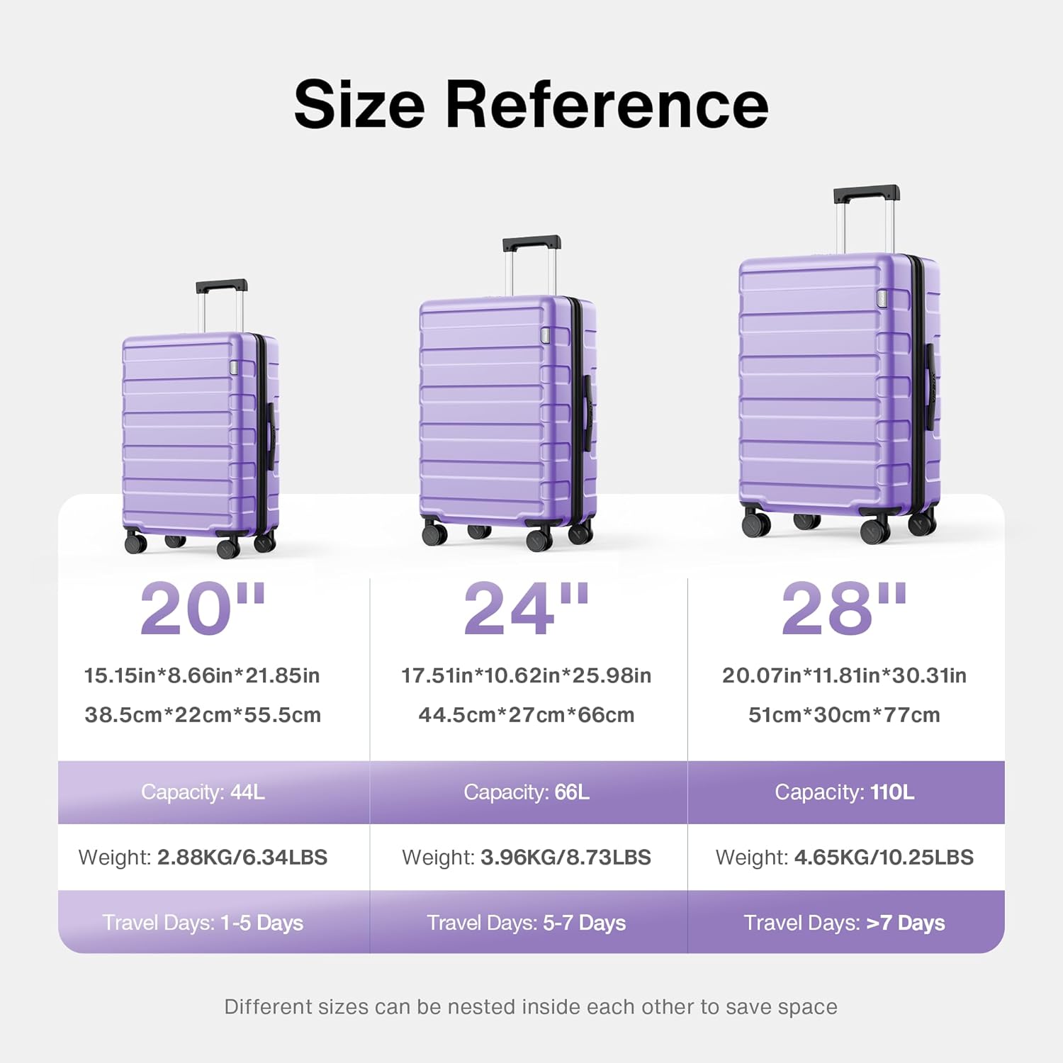 - PREMIUM AND SIMPLE STYLISH LIGHTWEIGHT SUITCASE SET FOR WOMEN MEN: The beautiful horizontal striped travel suitcases are matched with carefully selected colors, and the elegant appearance can stand out from the crowd. The sturdy, ergonomic 3-stage aluminum telescopic handle is suitable for users of different heights and is easy to operate, providing unparalleled convenience for your travel