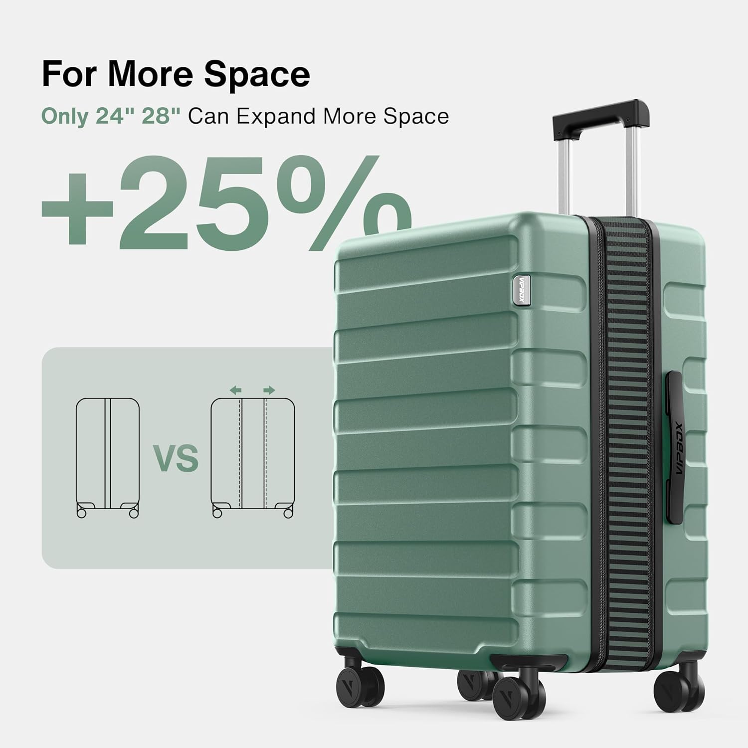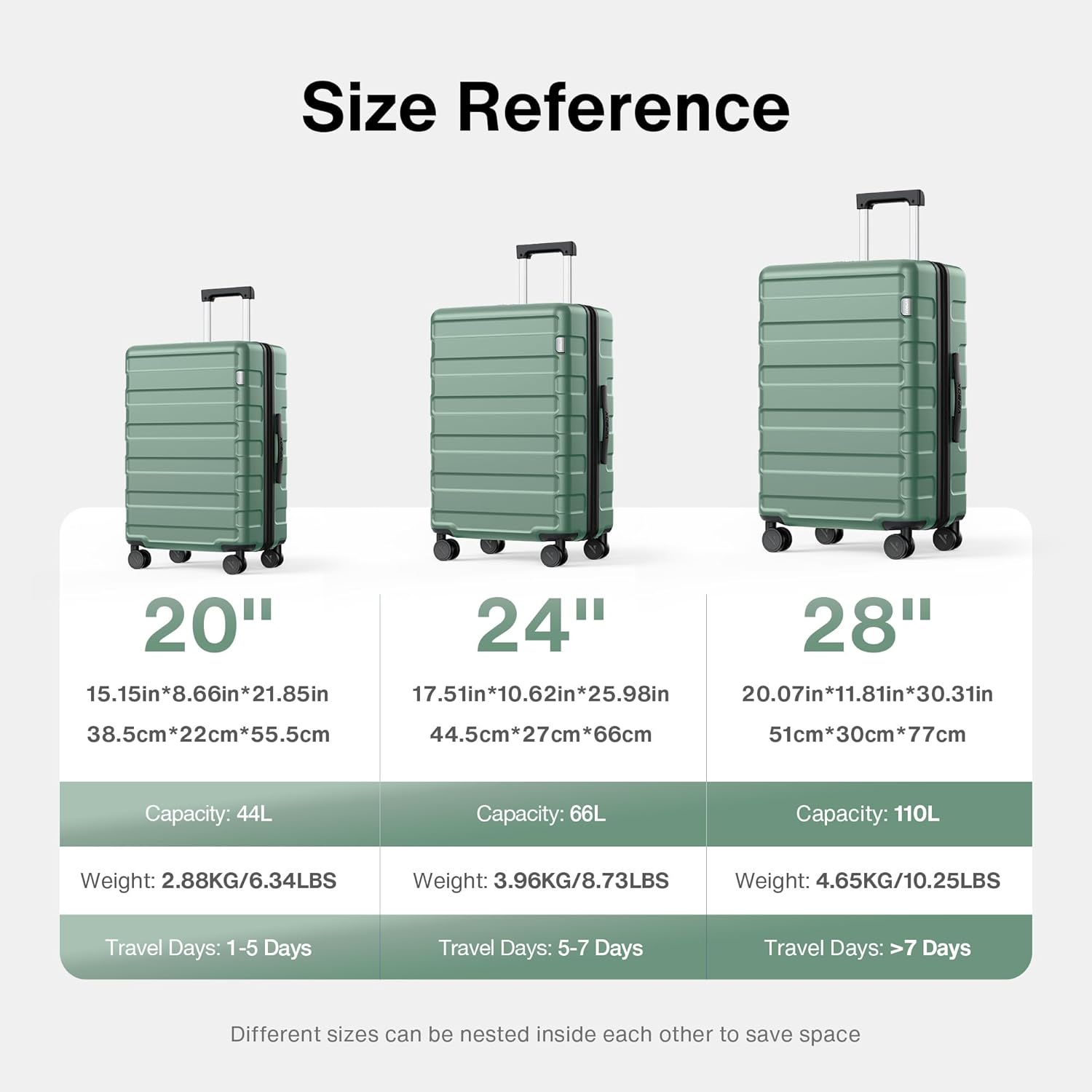 Luggage Sets 3 Piece (3-YEARS VIP SERVICE) Hardside Expandable Lightweight Premium Polycarbonate Simple Beautiful Travel Suitcase with Wheels x1 TSA Approved Lock for Women Men, Green