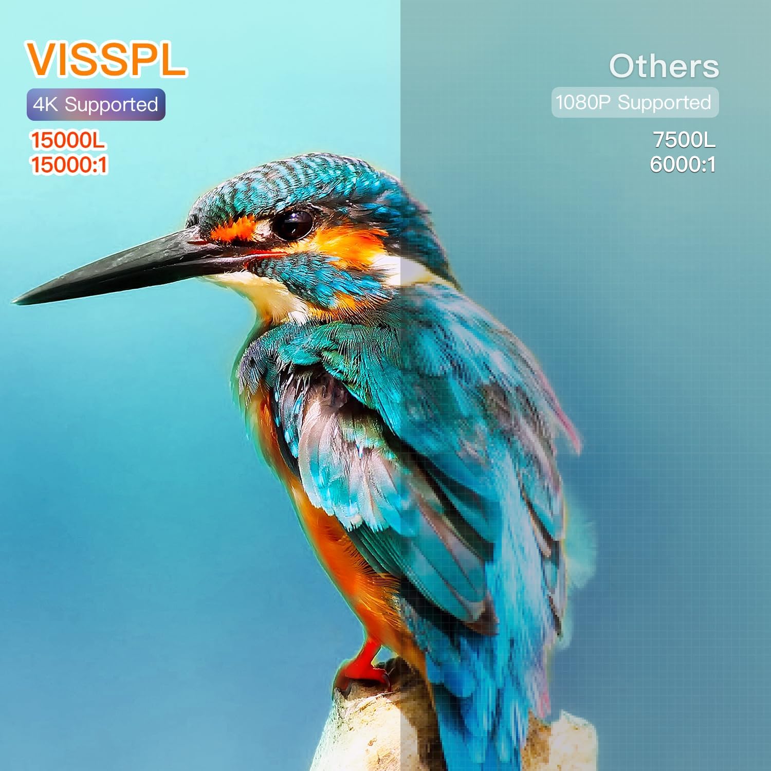 - 【Full HD 1080P & Eye Protection】The VISSPL 2025 projector supports 1080P resolution for stunning visuals. Powered by advanced LED technology and a uniform illumination method, our projector guarantees exceptional image quality, delivering a dynamic and color-vibrant effect, minimizing the impact of blue and direct light. Perfect for safeguarding children's eye health! For optimal performance, we recommend using video projector in a dark environment to fully enjoy its capabilities.