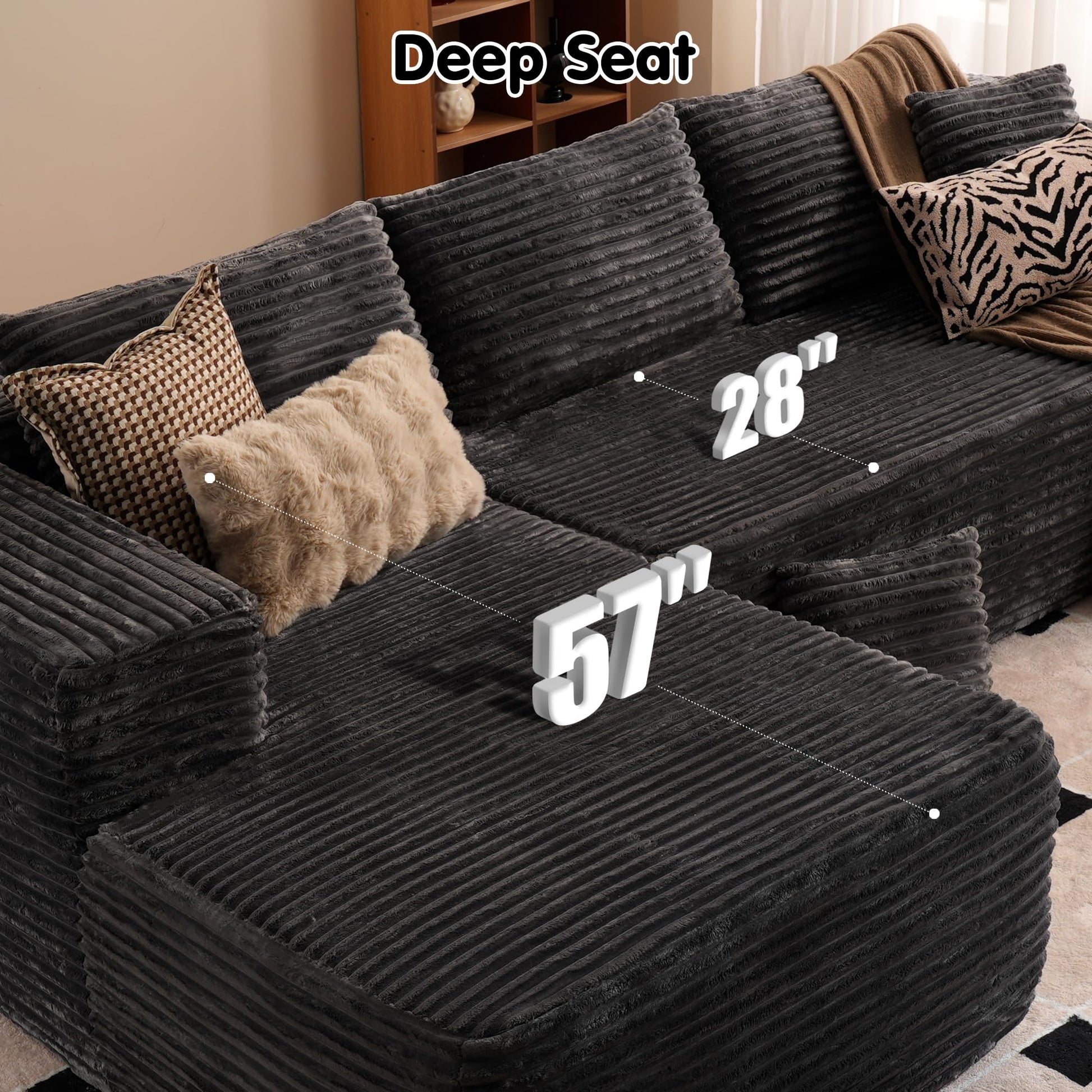 ovios 104" Cloud Sectional Couch with L-Shape Chaise,Modern Modular Sofa with Deep Seat, Upholstered Couches for Living Room Bedroom,No Assembly Required, Black (Corduroy Fabric)