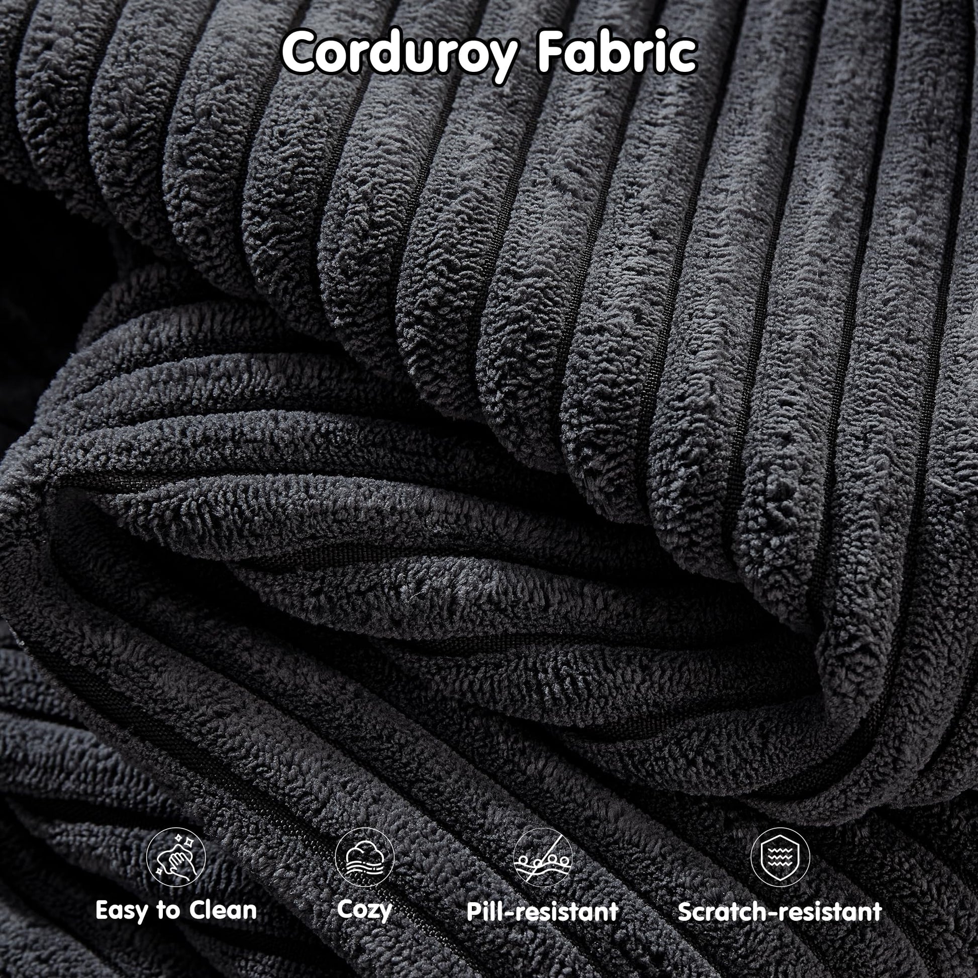 - Corduroy Fabric:Experience the lavish comfort of our enhanced corduroy fabric, offering unmatched softness and warmth. Its impressive durability and stain-fighting prowess keep your sofas looking fresh and lively. With a variety of color choices, our corduroy chaise sofa lets you showcase your unique style while adding irresistible charm to your space