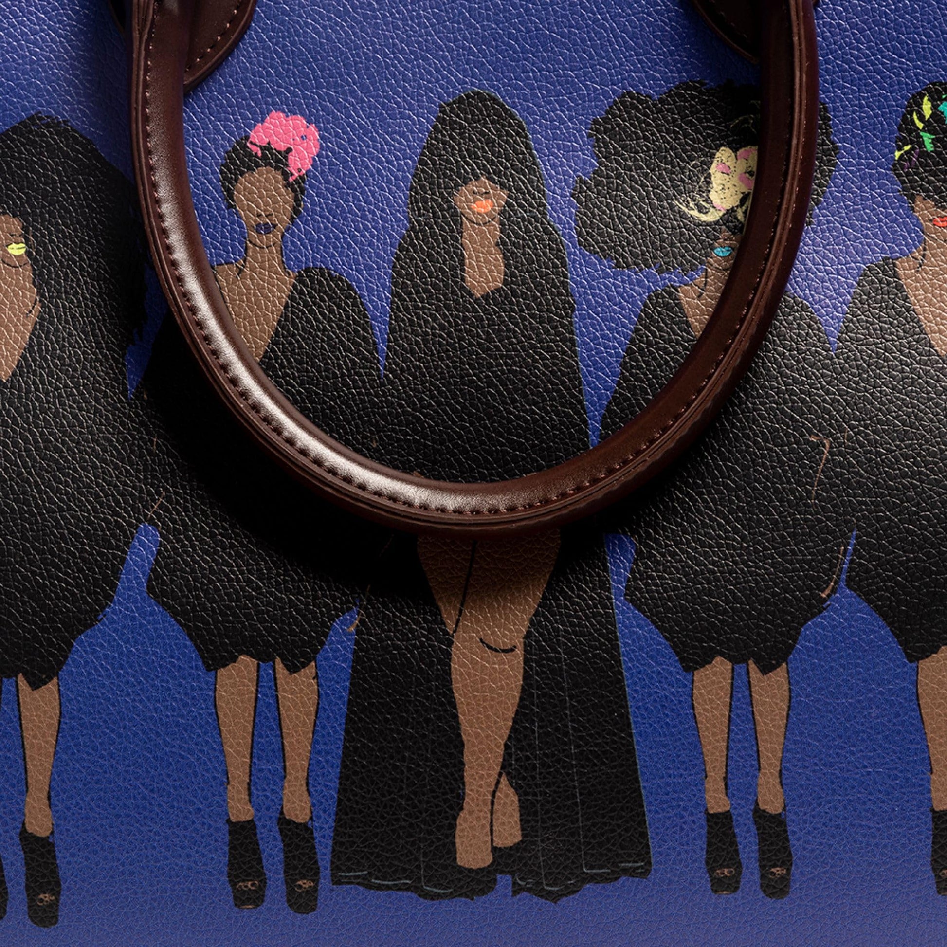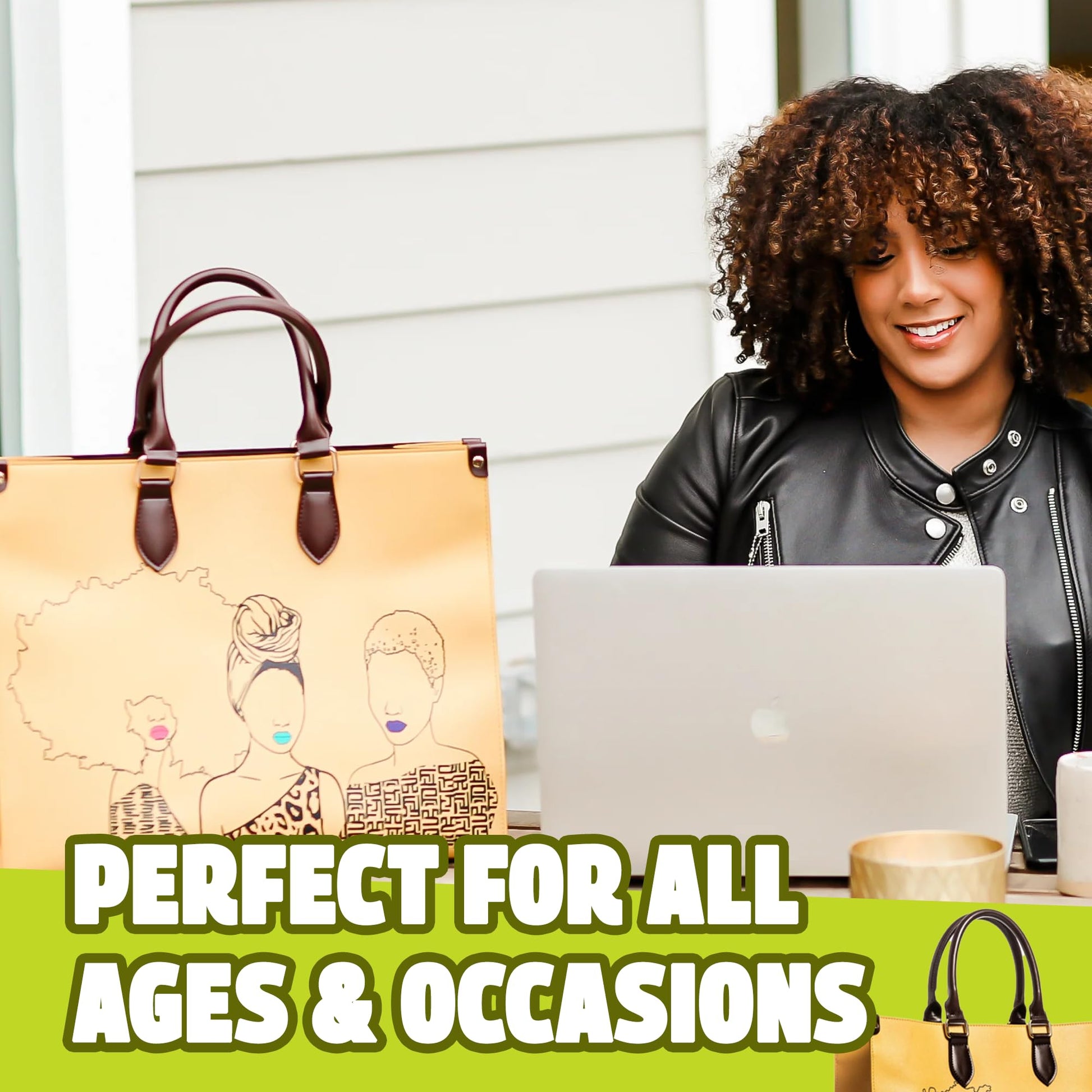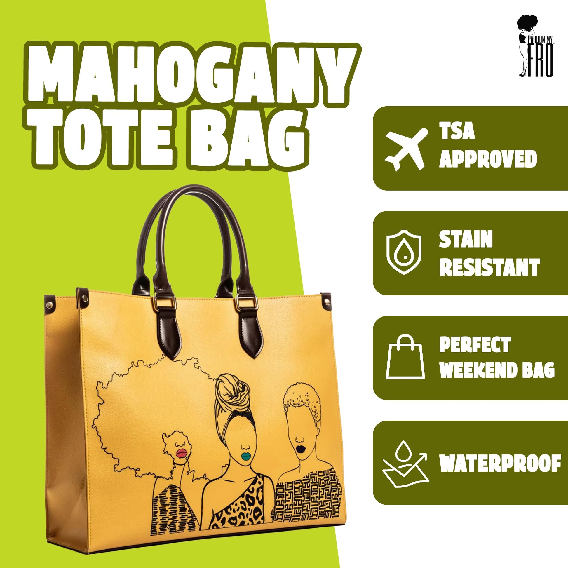 Pardon My Fro Tote Bag for Women – Large Shoulder Bag with Zippered Compartment, Fits Laptop, Mahogany Yellow and Tribe Blue