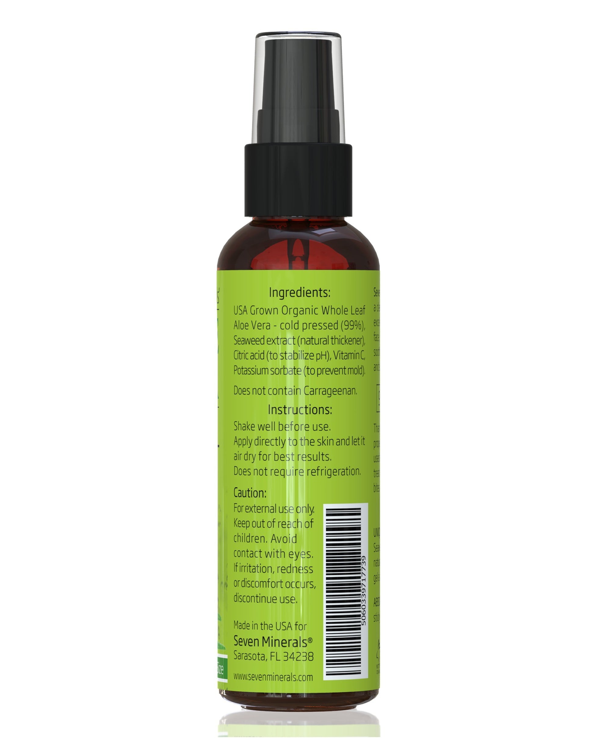 Seven Minerals Organic Aloe Vera Gel from freshly cut 100% Pure Aloe - Big 12oz - HighestQuality, Texas grown, Vegan, Unscented - For Face, Skin, Hair, Sunburn relief